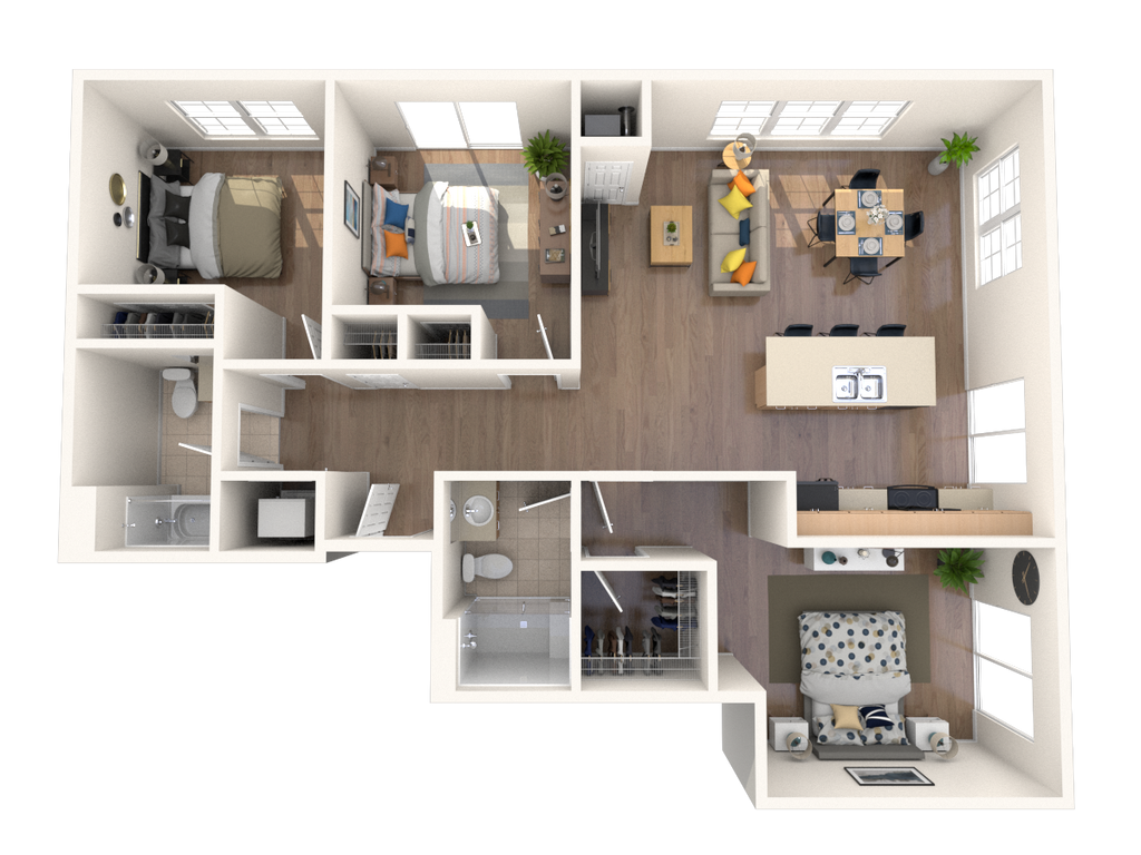 3 Beds, 2 Baths, 1337 sq ftLargest 3 BedroomThis is the largest 3 Bedroom at this PropertyModel Gallery