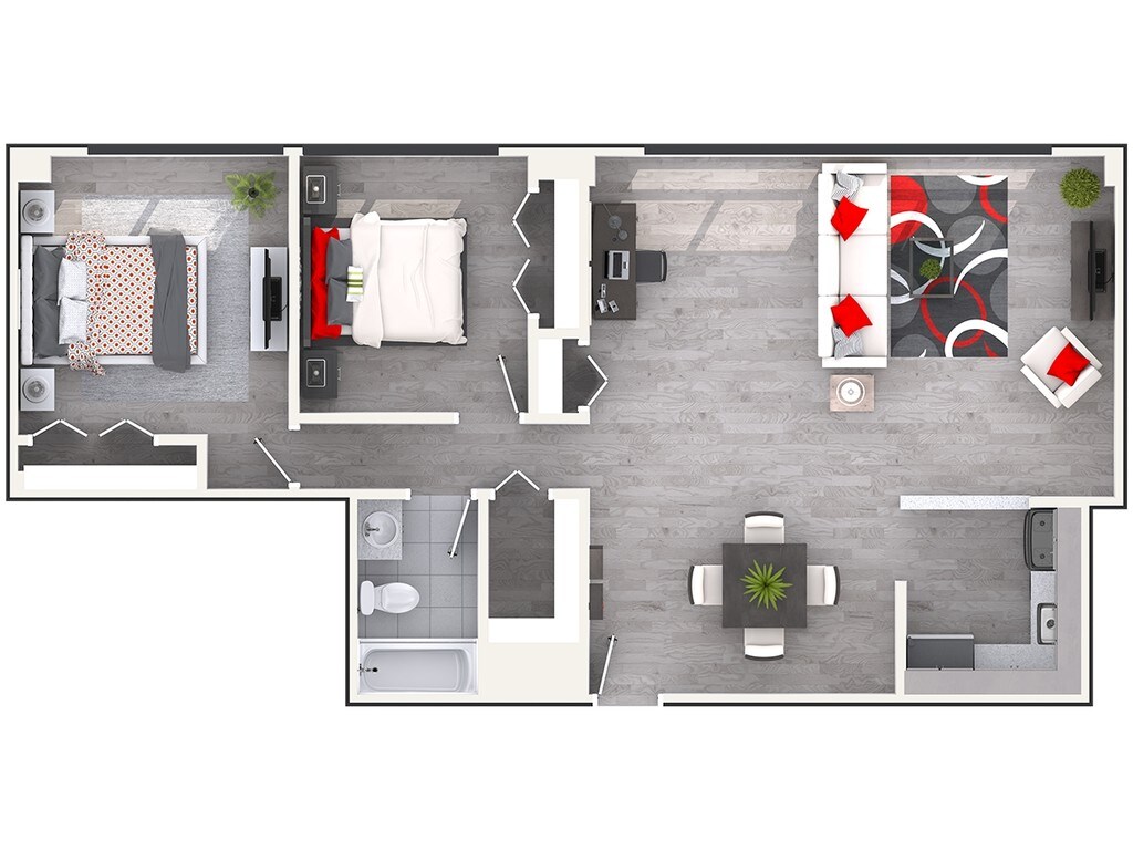 2 Beds, 1 Bath, 1005 sq ftModel Gallery