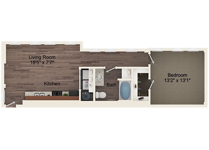 A5 - Floorplan 1 Apartment Unit: 3103Apartment Model: A5$1,3181 Bedroom, 1 Bath, 799 sq ftAvailable NowFloorplan A6