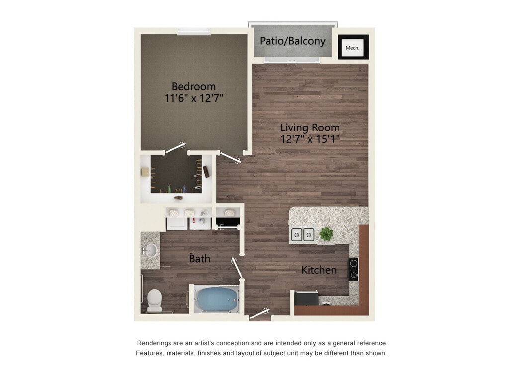 Studio, 1 Bath, 502 sq ftModel Gallery