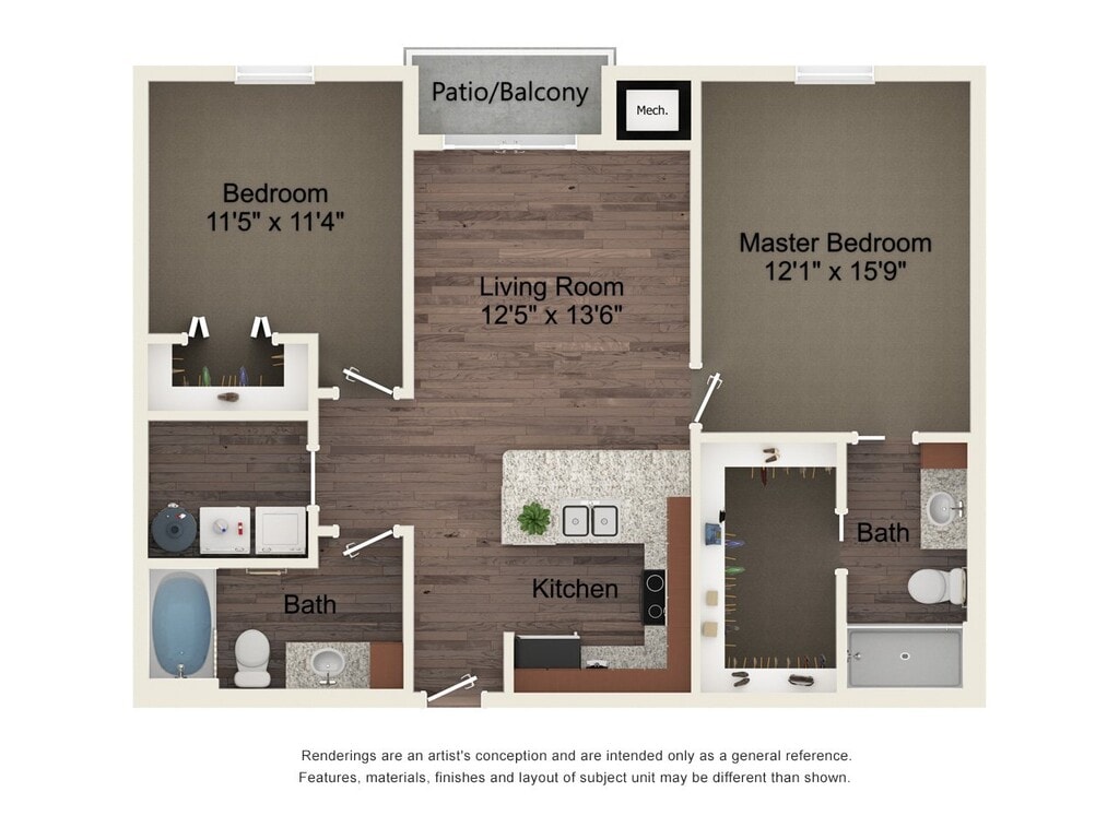 Apartment Model: B1From $1,5652 Bedroom, 2 Bath, 1047 sq ftAvailable Now![]()