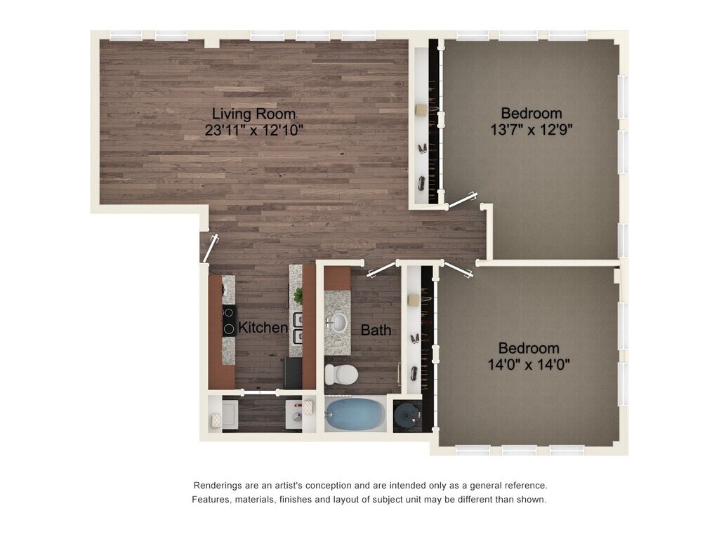 1 Bed, 1 Bath, 736 sq ftModel Gallery
