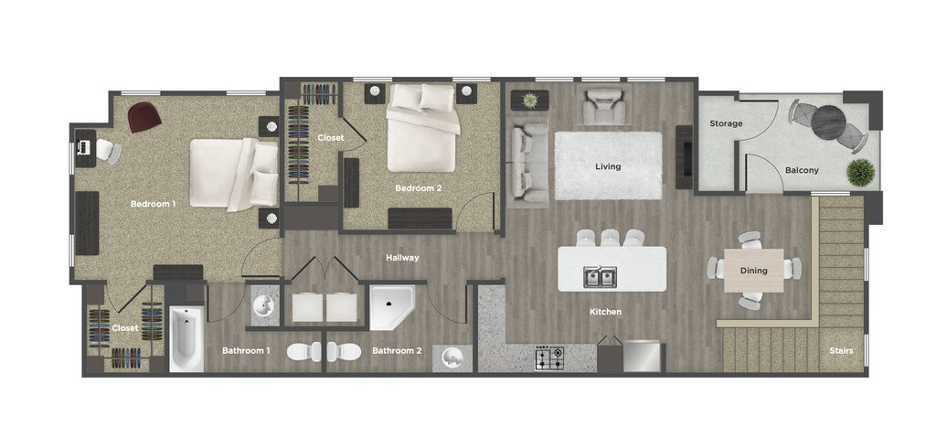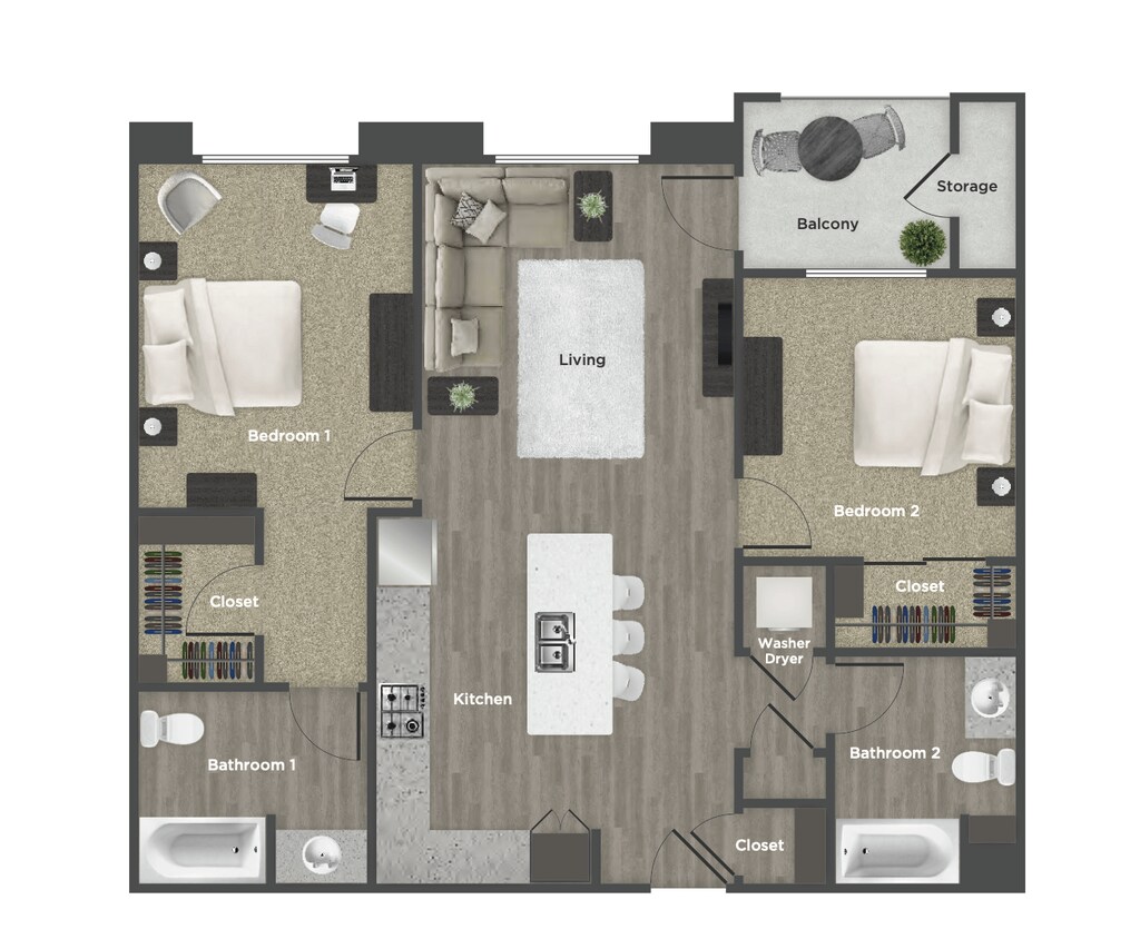 2 Beds, 2 Baths, 1075 sq ftAvailable NowModel Gallery