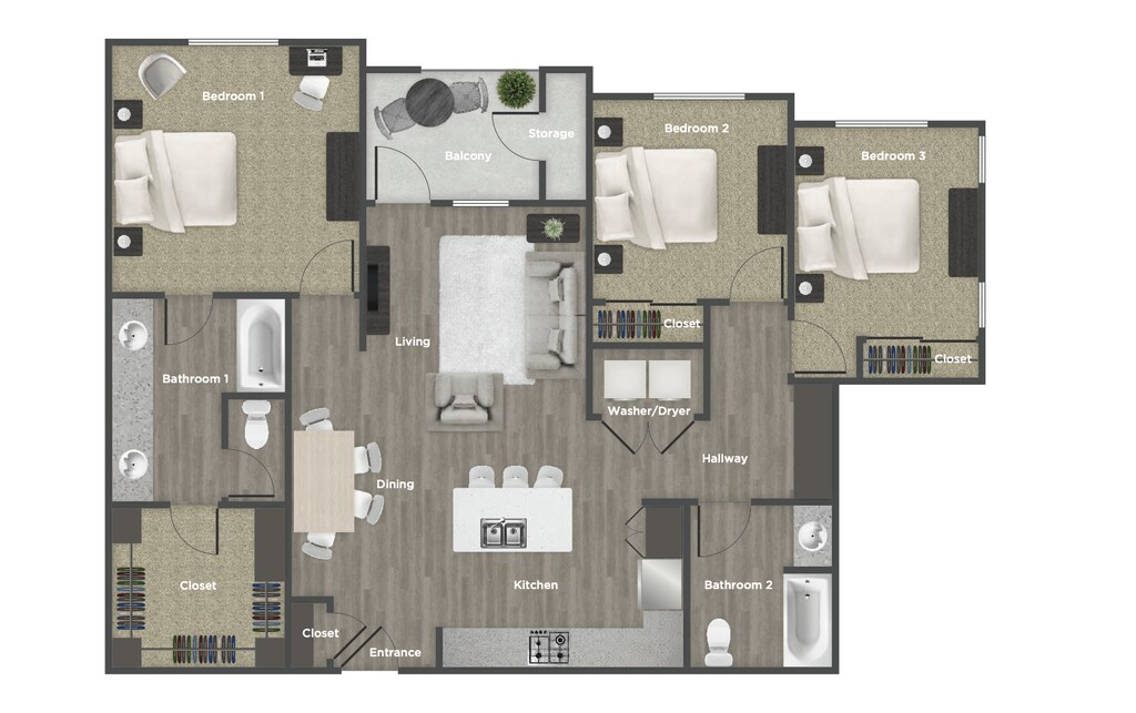 1 Bed, 1 Bath, 783-874 sq ftAvailable NowLargest 1 BedroomThis is the largest 1 Bedroom at this PropertyModel Gallery