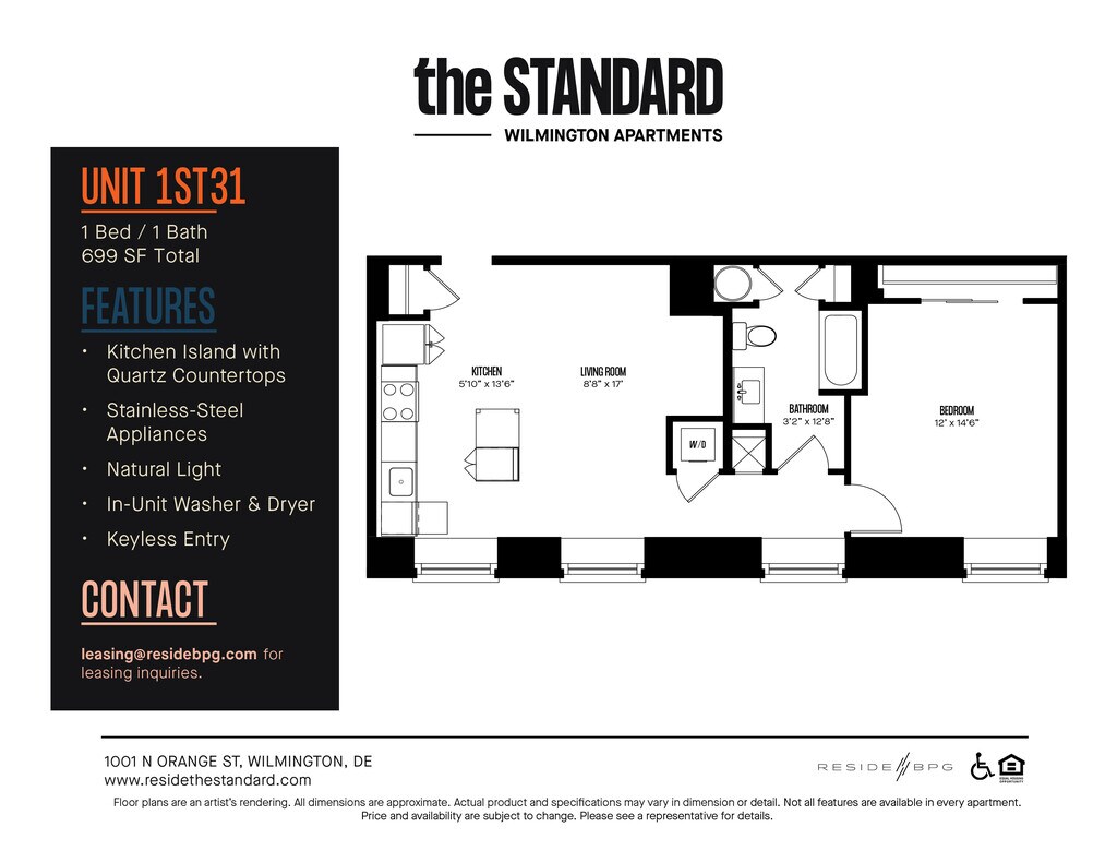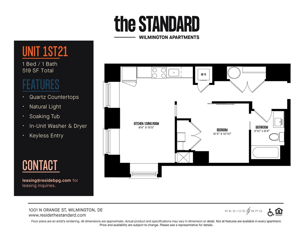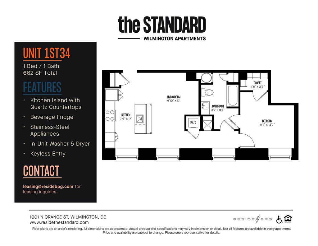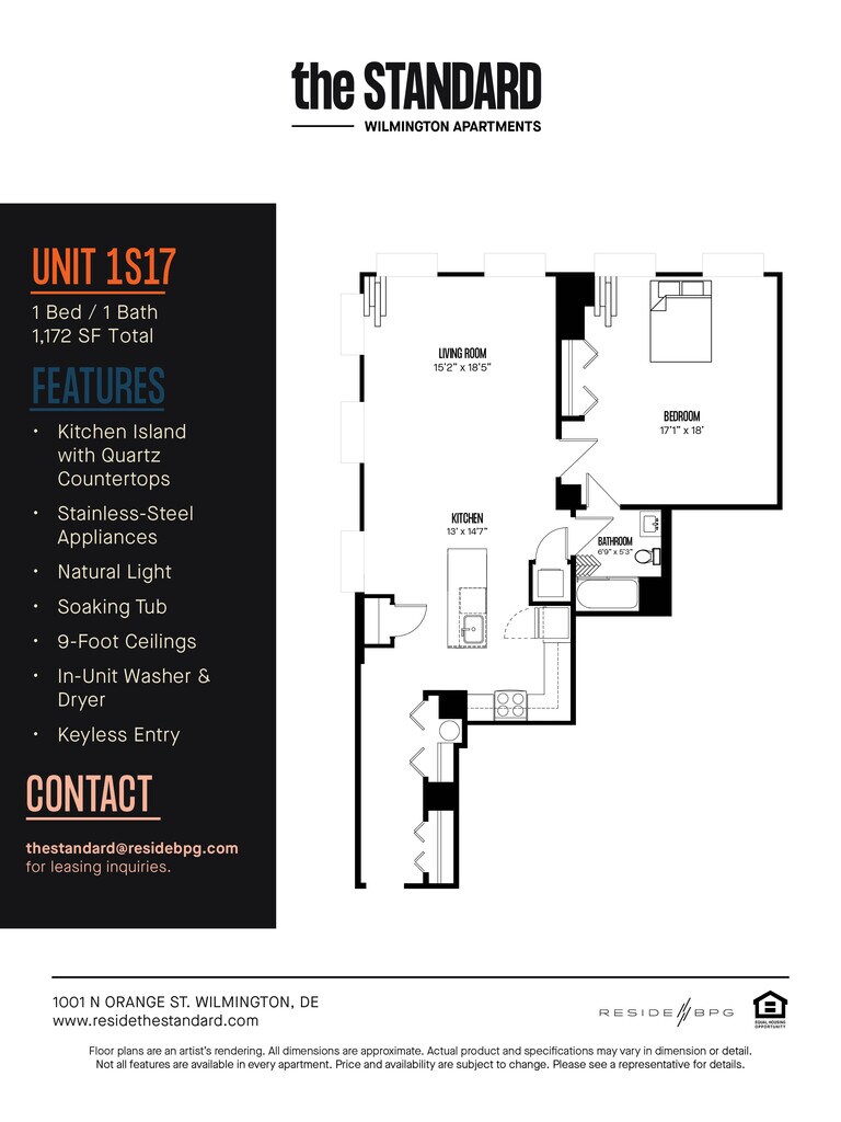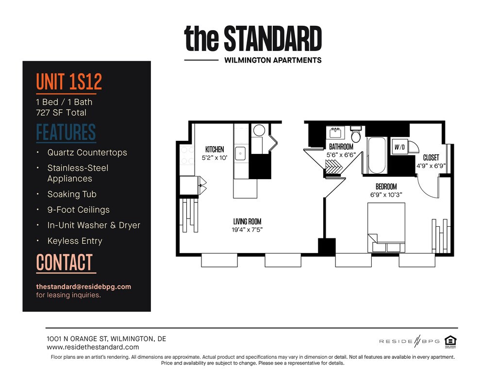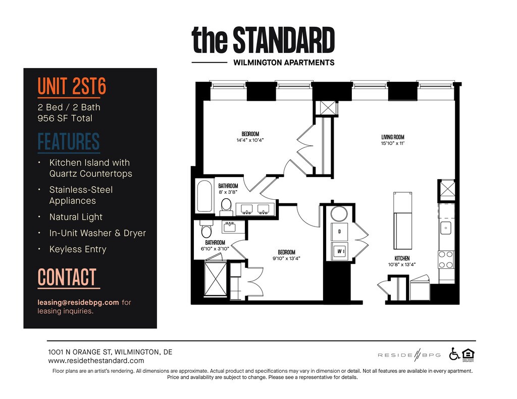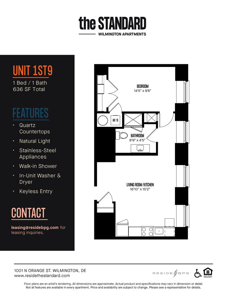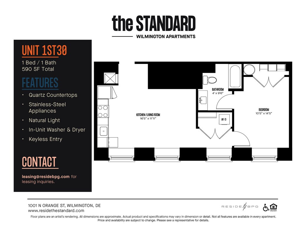 Aptly named The Standard, the new multifamily residential component sets the new standard for apartment living in Wilmington. Residents can take advantage of the various onsite amenities such as a co-working space, boutique fitness center, movie theater, and on-site dining in addition to new amenities like a private rooftop balcony and a resident clubroom perfect for entertaining. The pet-friendly community features a dog-washing station, secure package receiving, 24/7 security, and onsite ResideBPG property management and maintenance. Studio, one-, two-, and three-bedroom apartment homes at The Standard showcases high-end finishes unique to this community like continuous quartz countertops and backsplashes, herringbone tile bathroom flooring, and two-tone upper and lower kitchen cabinets. Other apartment features include kitchen islands and peninsulas, spacious floor plans, stainless-steel appliances, keyless entry, and in-unit washer & dryer.