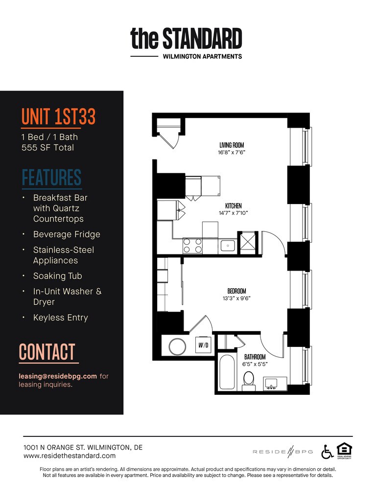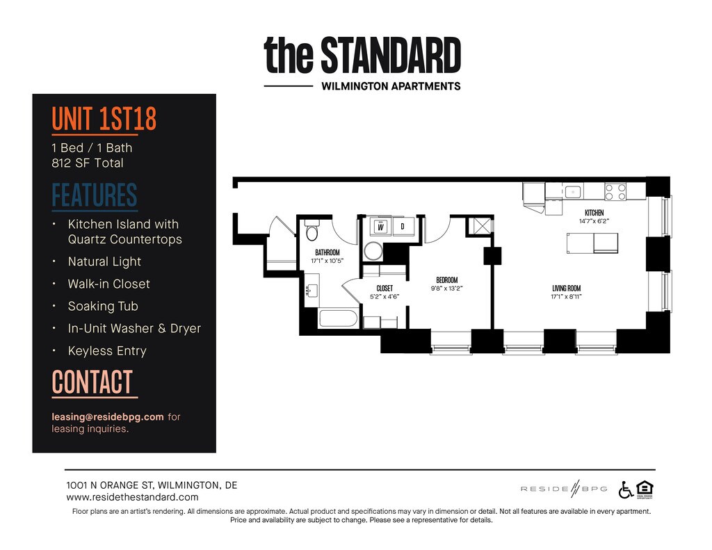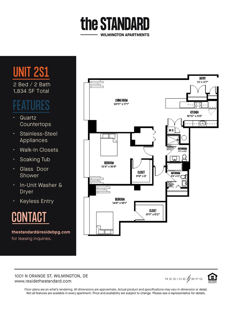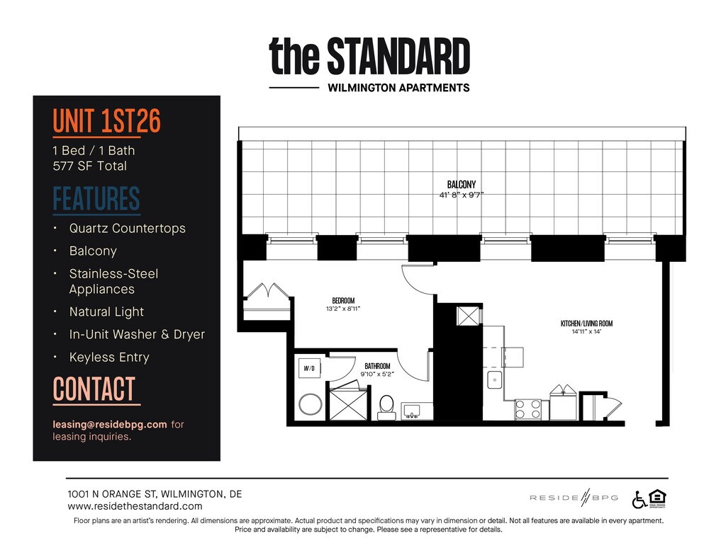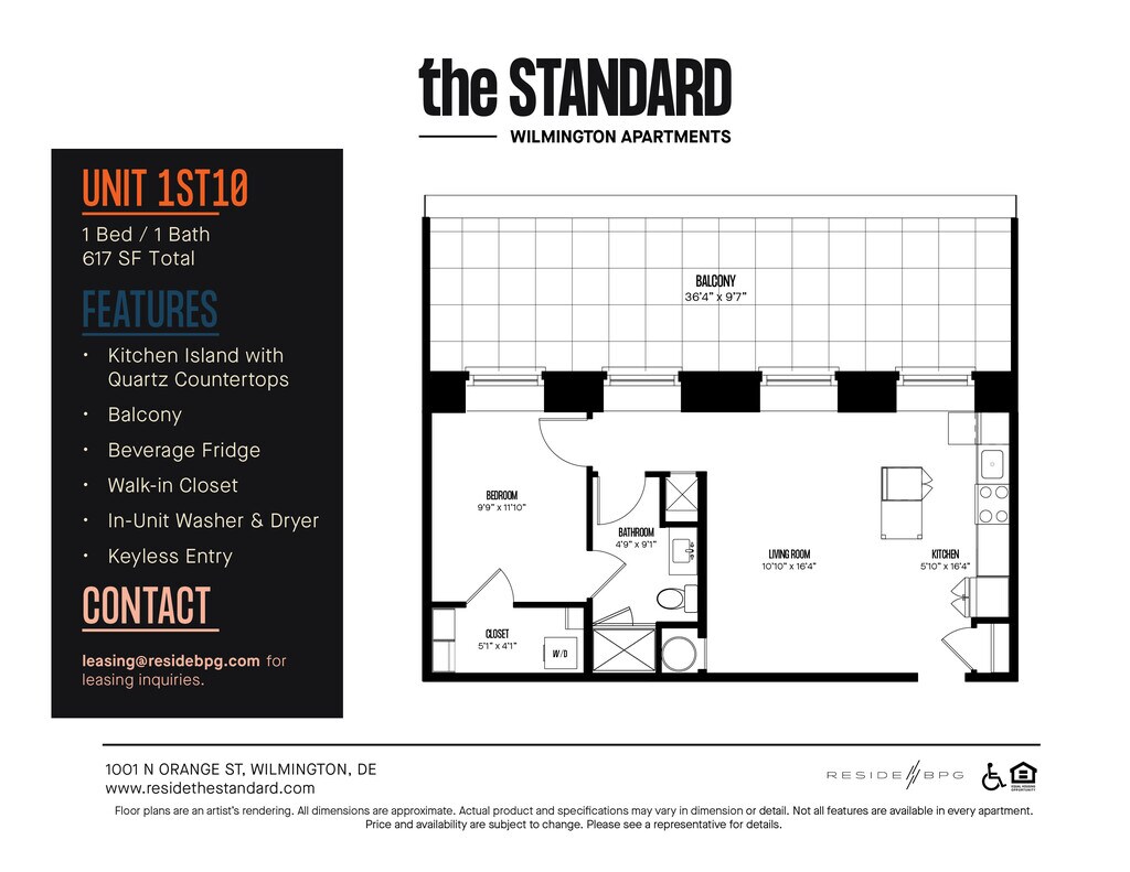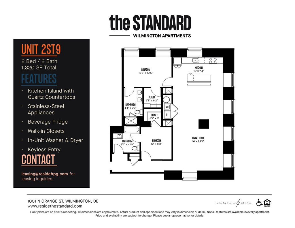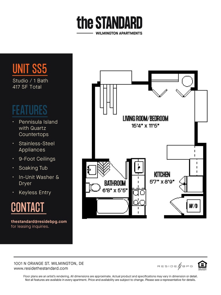 Aptly named The Standard, the new multifamily residential component sets the new standard for apartment living in Wilmington. Residents can take advantage of the various onsite amenities such as a co-working space, boutique fitness center, movie theater, and on-site dining in addition to new amenities like a private rooftop balcony and a resident clubroom perfect for entertaining. The pet-friendly community features a dog-washing station, secure package receiving, 24/7 security, and onsite ResideBPG property management and maintenance. Studio, one-, two-, and three-bedroom apartment homes at The Standard showcases high-end finishes unique to this community like continuous quartz countertops and backsplashes, herringbone tile bathroom flooring, and two-tone upper and lower kitchen cabinets. Other apartment features include kitchen islands and peninsulas, spacious floor plans, stainless-steel appliances, keyless entry, and in-unit washer & dryer.