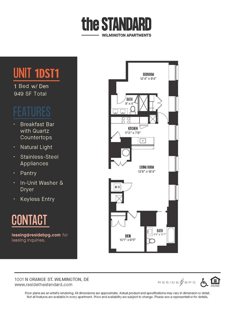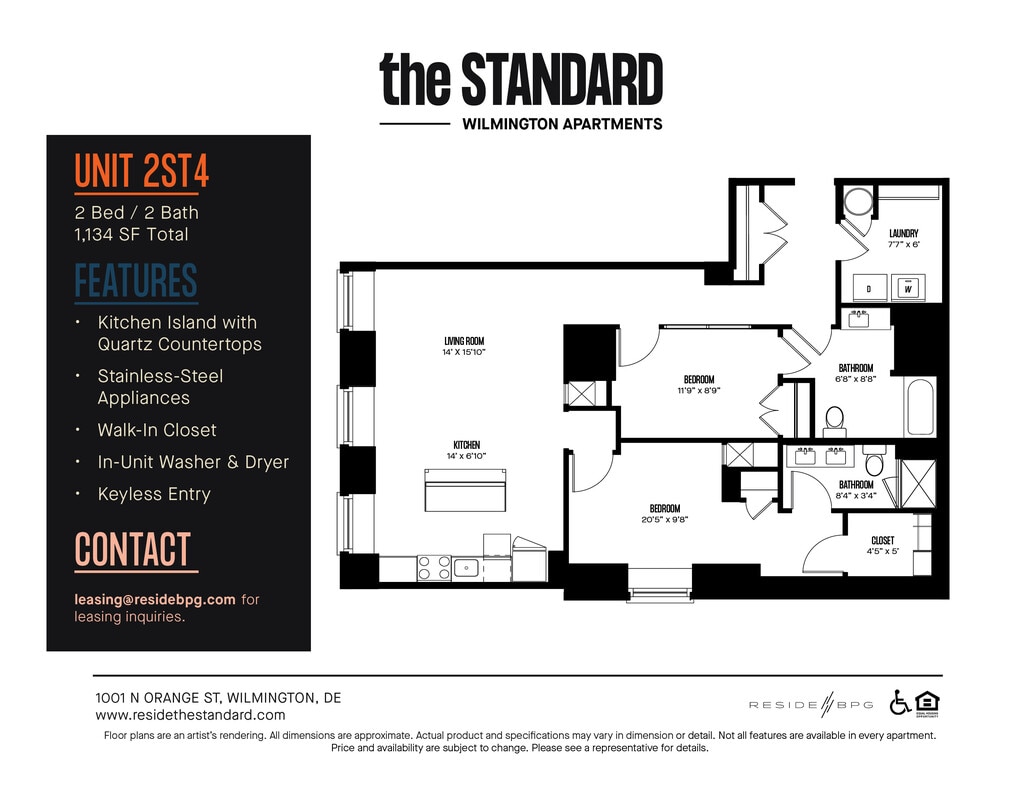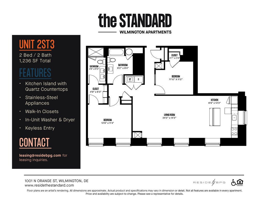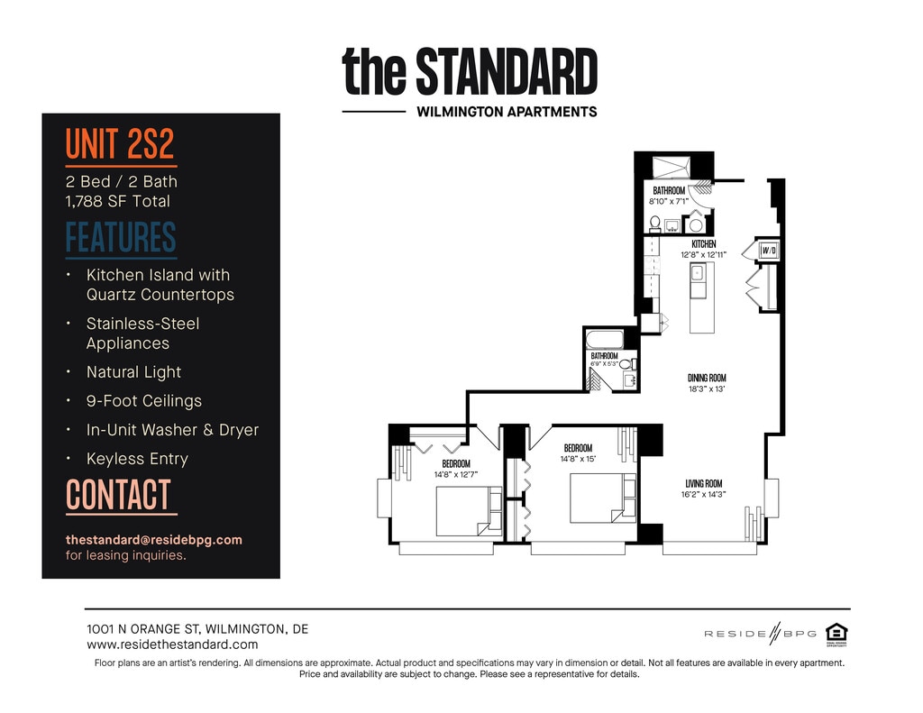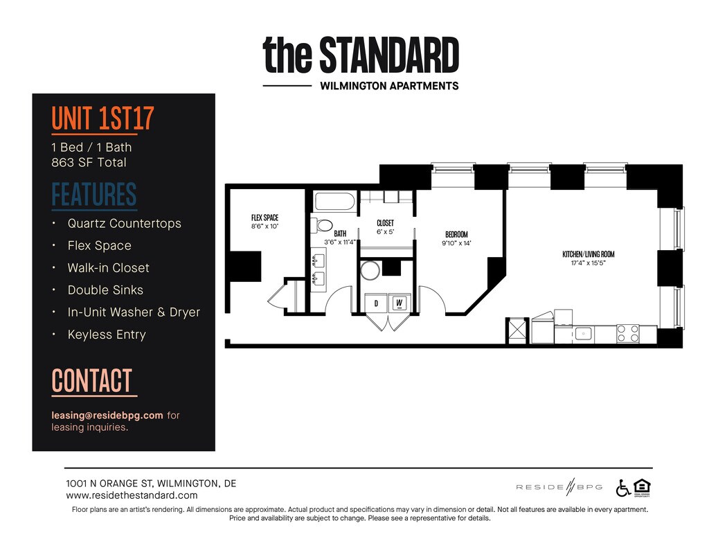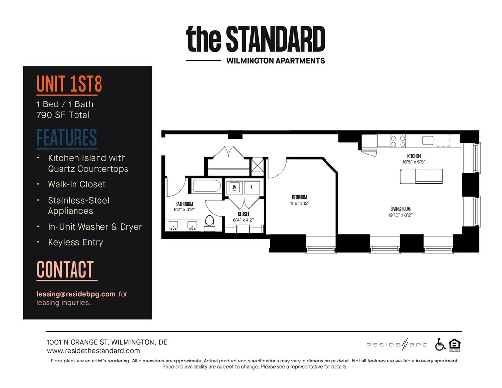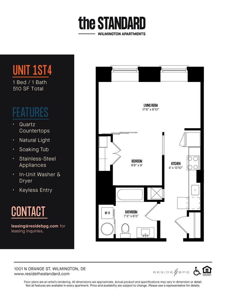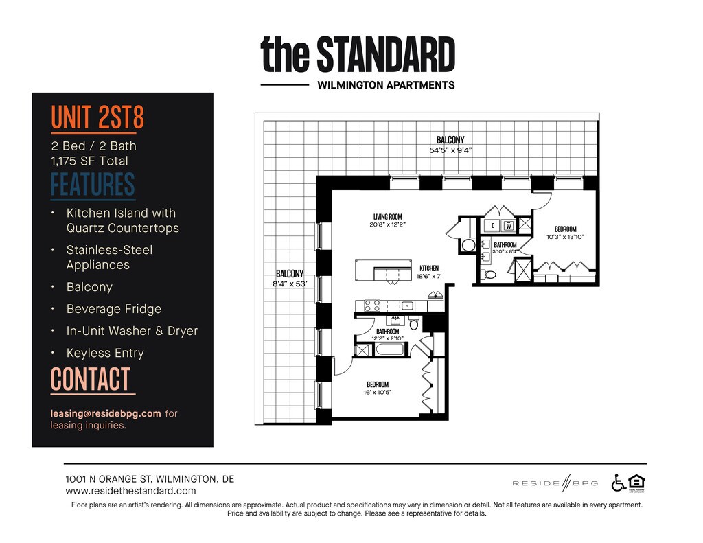 Aptly named The Standard, the new multifamily residential component sets the new standard for apartment living in Wilmington. Residents can take advantage of the various onsite amenities such as a co-working space, boutique fitness center, movie theater, and on-site dining in addition to new amenities like a private rooftop balcony and a resident clubroom perfect for entertaining. The pet-friendly community features a dog-washing station, secure package receiving, 24/7 security, and onsite ResideBPG property management and maintenance. Studio, one-, two-, and three-bedroom apartment homes at The Standard showcases high-end finishes unique to this community like continuous quartz countertops and backsplashes, herringbone tile bathroom flooring, and two-tone upper and lower kitchen cabinets. Other apartment features include kitchen islands and peninsulas, spacious floor plans, stainless-steel appliances, keyless entry, and in-unit washer & dryer.