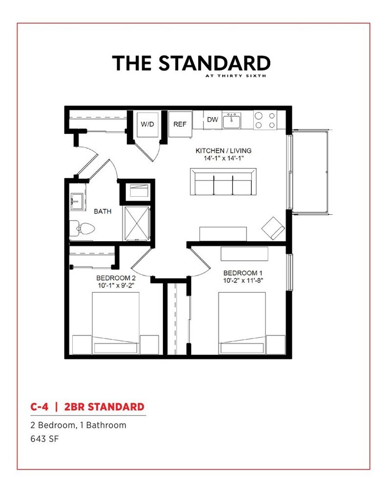 1 Bedroom to 2 Bedroom Apartments at The Standard at 36th Street currently range from $1,245 to $1,800