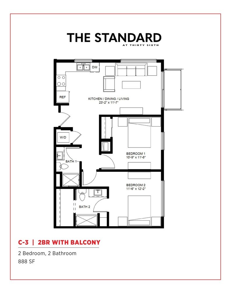1 Bedroom to 2 Bedroom Apartments at The Standard at 36th Street currently range from $1,225 to $1,685