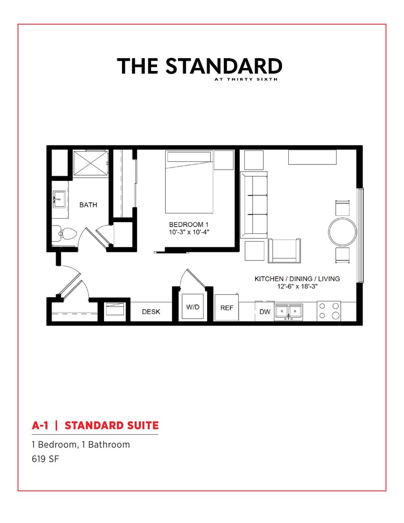 The Standard at 36th Street offers 1 to 2 Bedroom apartments starting from $1,225 and having 606–888 sq ft. Here is the current pricing and availability: