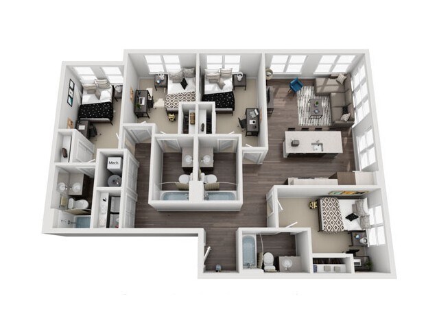 Chelsea - Floorplan 1 Apartment Unit: PrivateApartment Model: Chelsea$1,4503 Bedroom, 3 Bath, 1094 sq ftAvailable August 13, 20264 Bedrooms