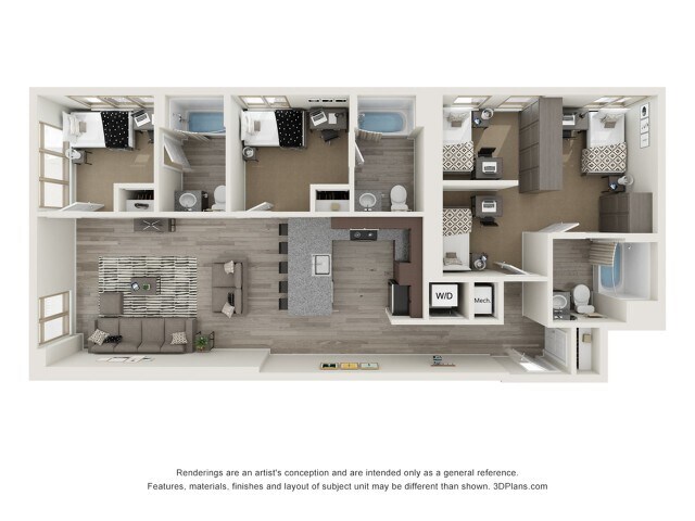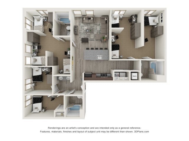Chelsea - 3X3 - Floorplan 1 Apartment Unit: PrivateApartment Model: Chelsea - 3X3$8,7003 Bedroom, 3 Bath, 1292 sq ftAvailable August 22, 20264 Bedrooms