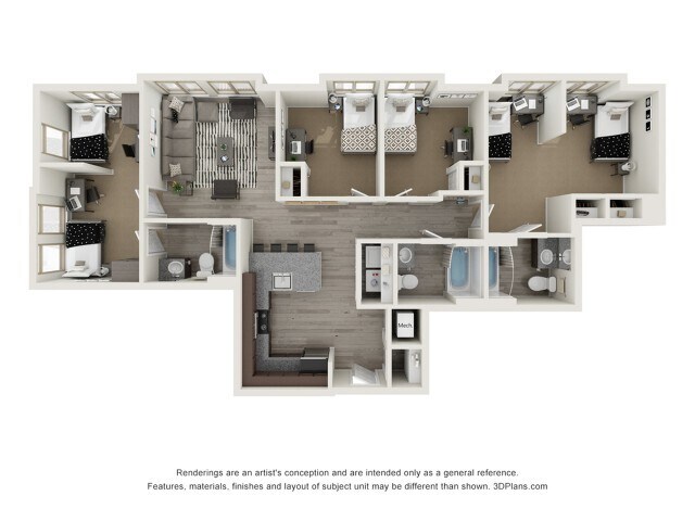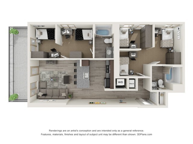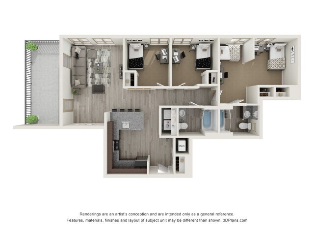 Apartment Model: Derby - 4x3From $9,8004 Bedroom, 3 Bath, 1224 sq ftAvailable Now![]()