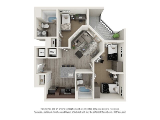 2 Beds, 2 Baths, 1094 sq ftAvailable August 22, 2026Largest 2 BedroomThis is the largest 2 Bedroom at this PropertyModel Gallery