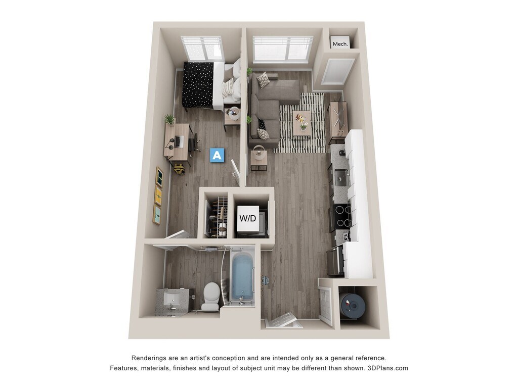 Studio, 1 Bath, 391 sq ftAvailable NowModel Gallery