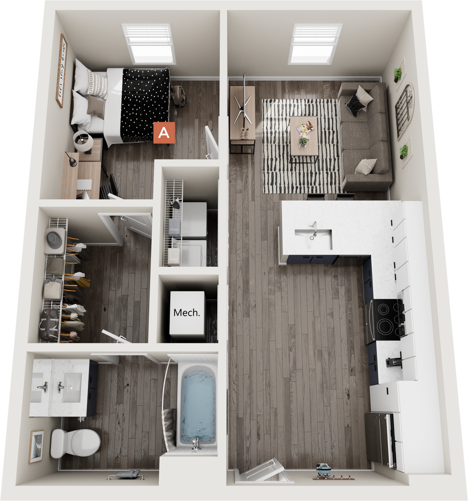 1 Bed, 1 Bath, 600 sq ftModel Gallery