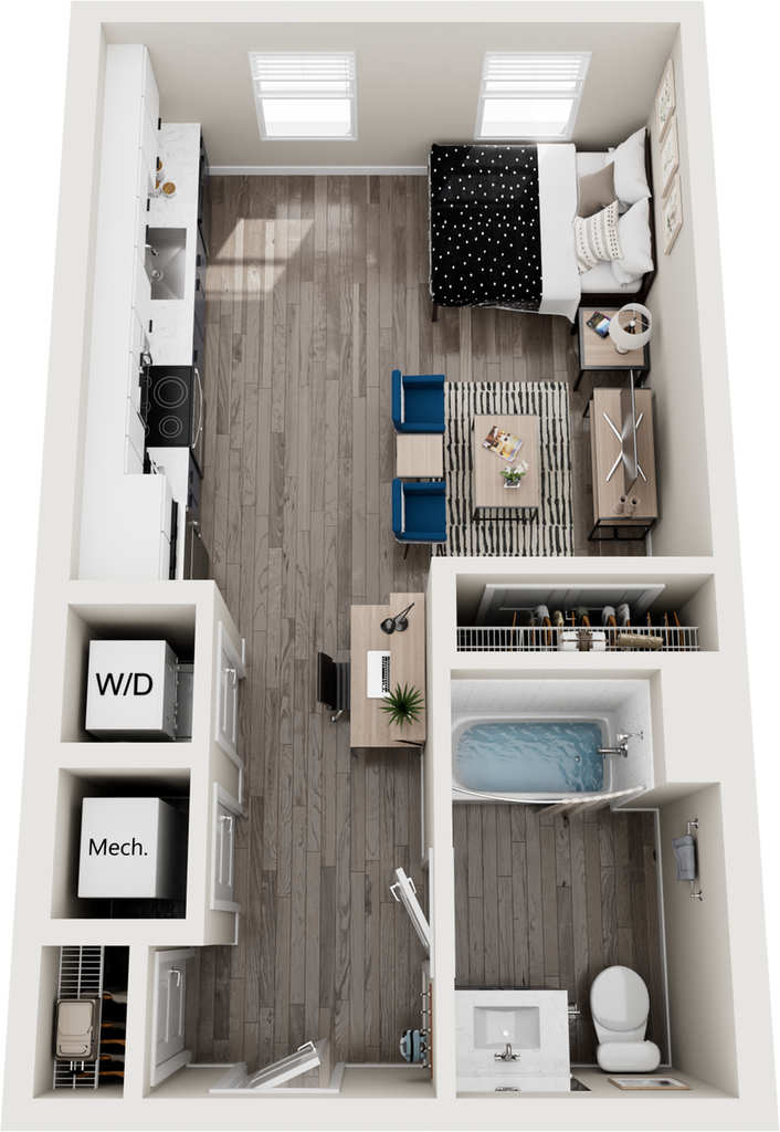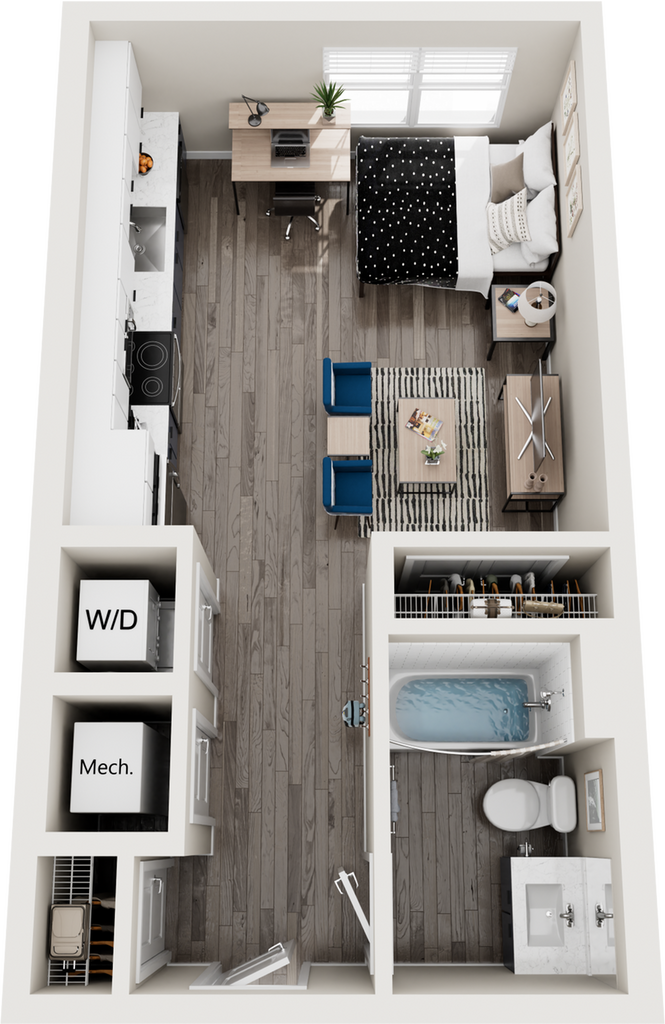 Studio, 1 Bath, 445 sq ftPlus FeesAvailable August 15, 2026Model Gallery