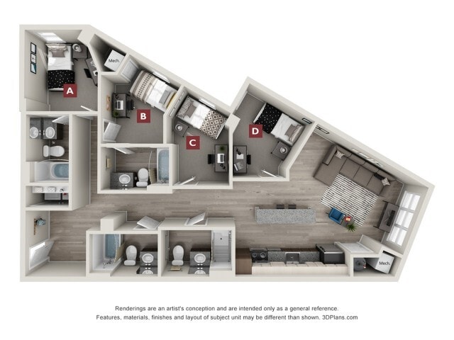 Apartment Model: Beacon - 2x1 (per bed space)2 Bedroom, 1 Bath, 697 sq ftUnavailable![]()