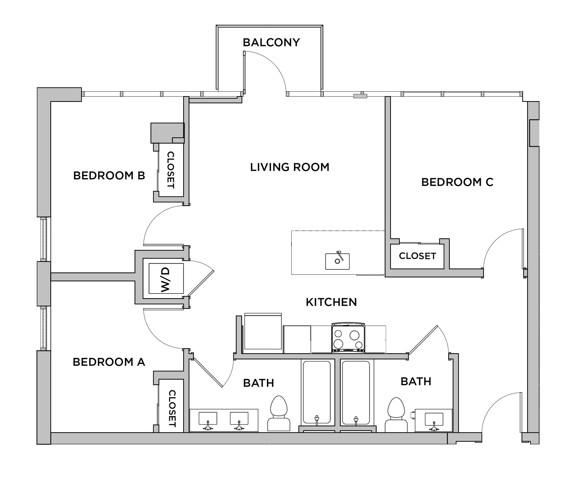 Apartment Model: C2 - 3x3$1,8503 Bedroom, 3 Bath, 913 sq ftAvailable Now![]()