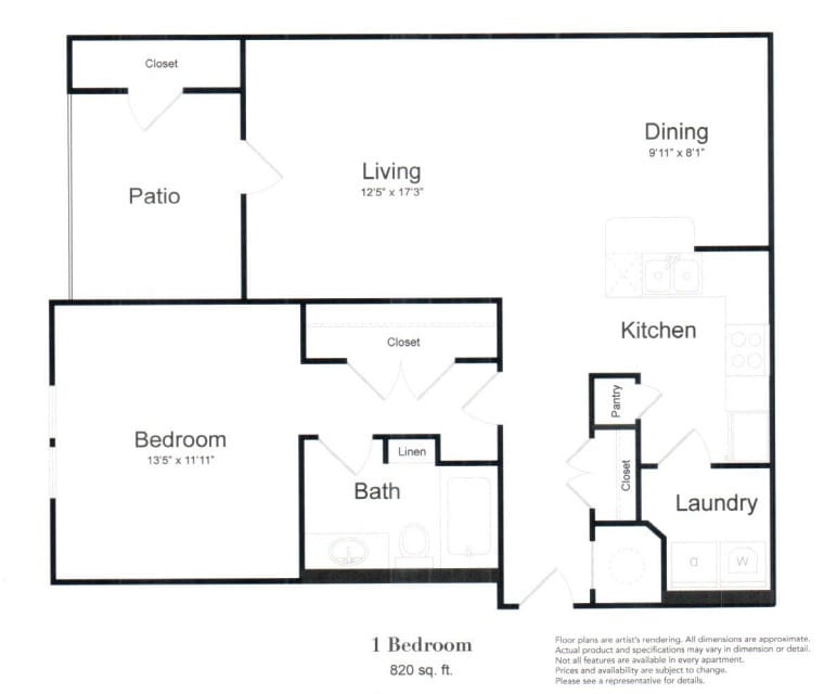 Apartment Model: One Bedroom | One BathroomFrom $1,1501 Bedroom, 1 Bath, 820 sq ftAvailable NowFloorplansPhotos![]()