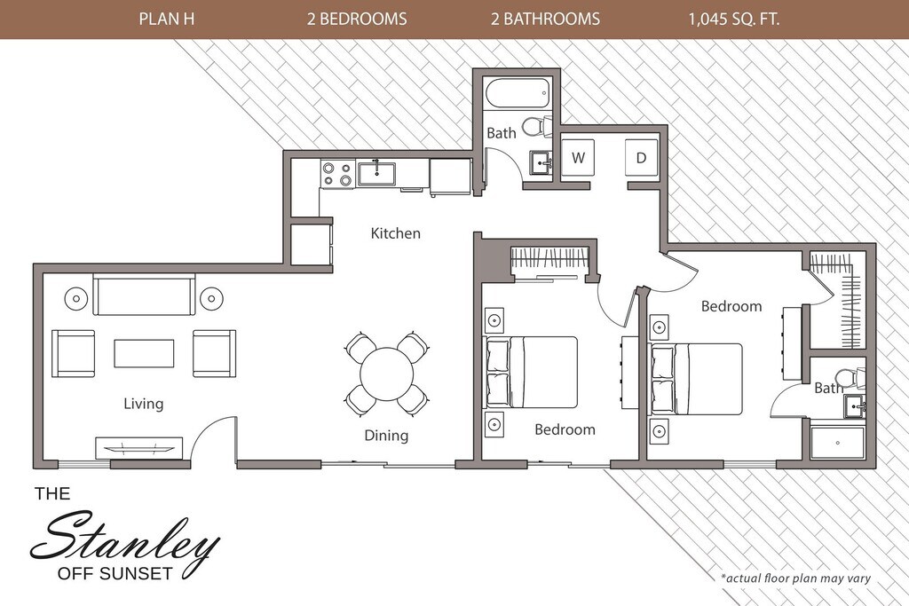 2 Bedrooms, 2 Baths Plan H - Floorplan 1 ![]()