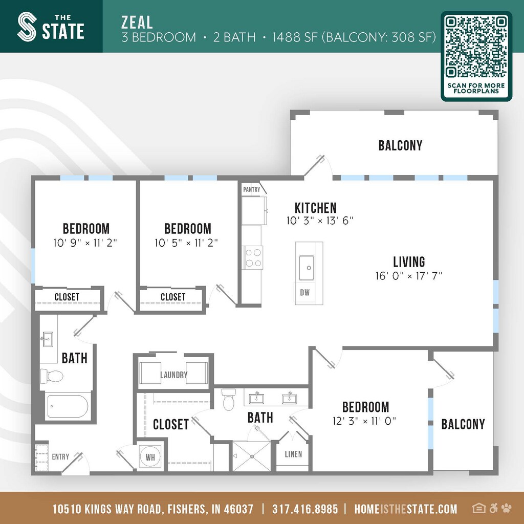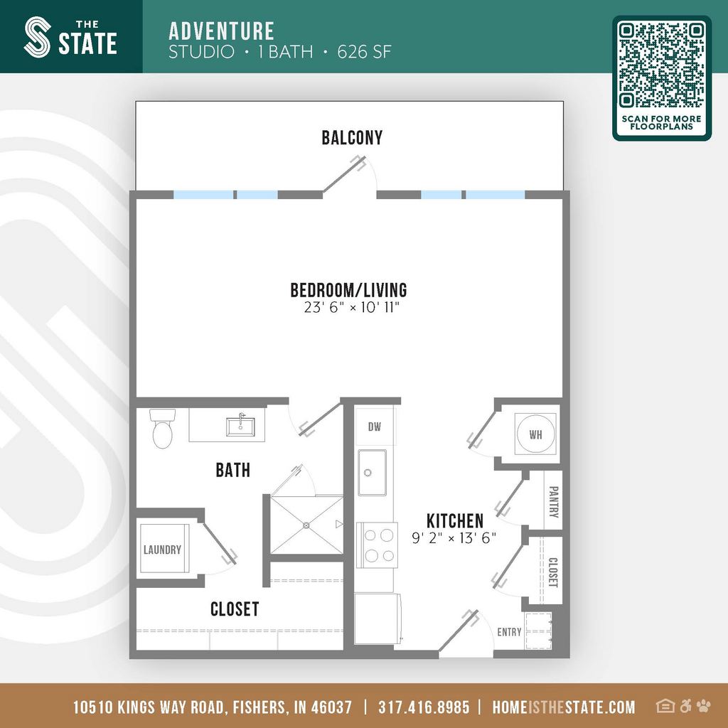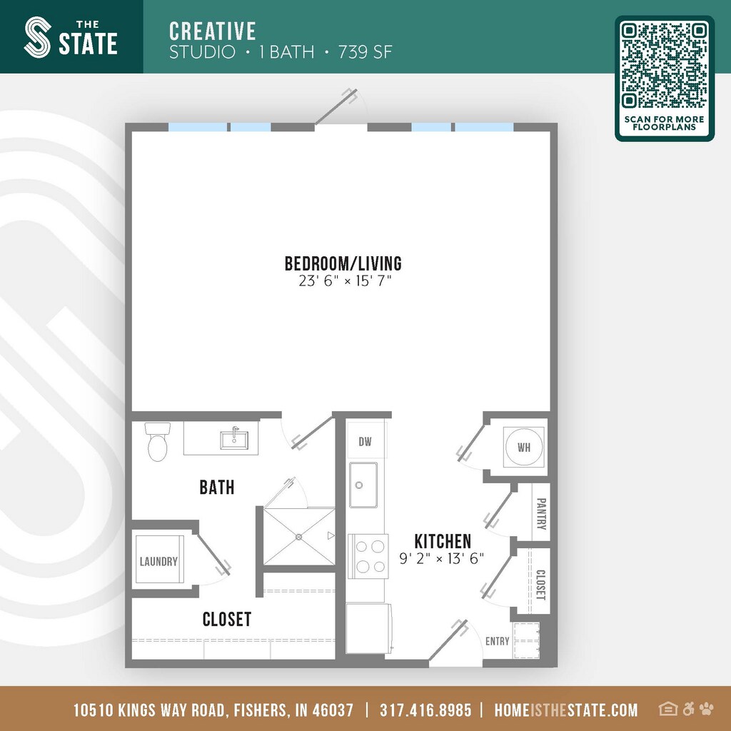 The State at Fishers Apartments offers Studio to 3 Bedroom apartments starting from $1,294 and having 100–1,488 sq ft. Here is the current pricing and availability: