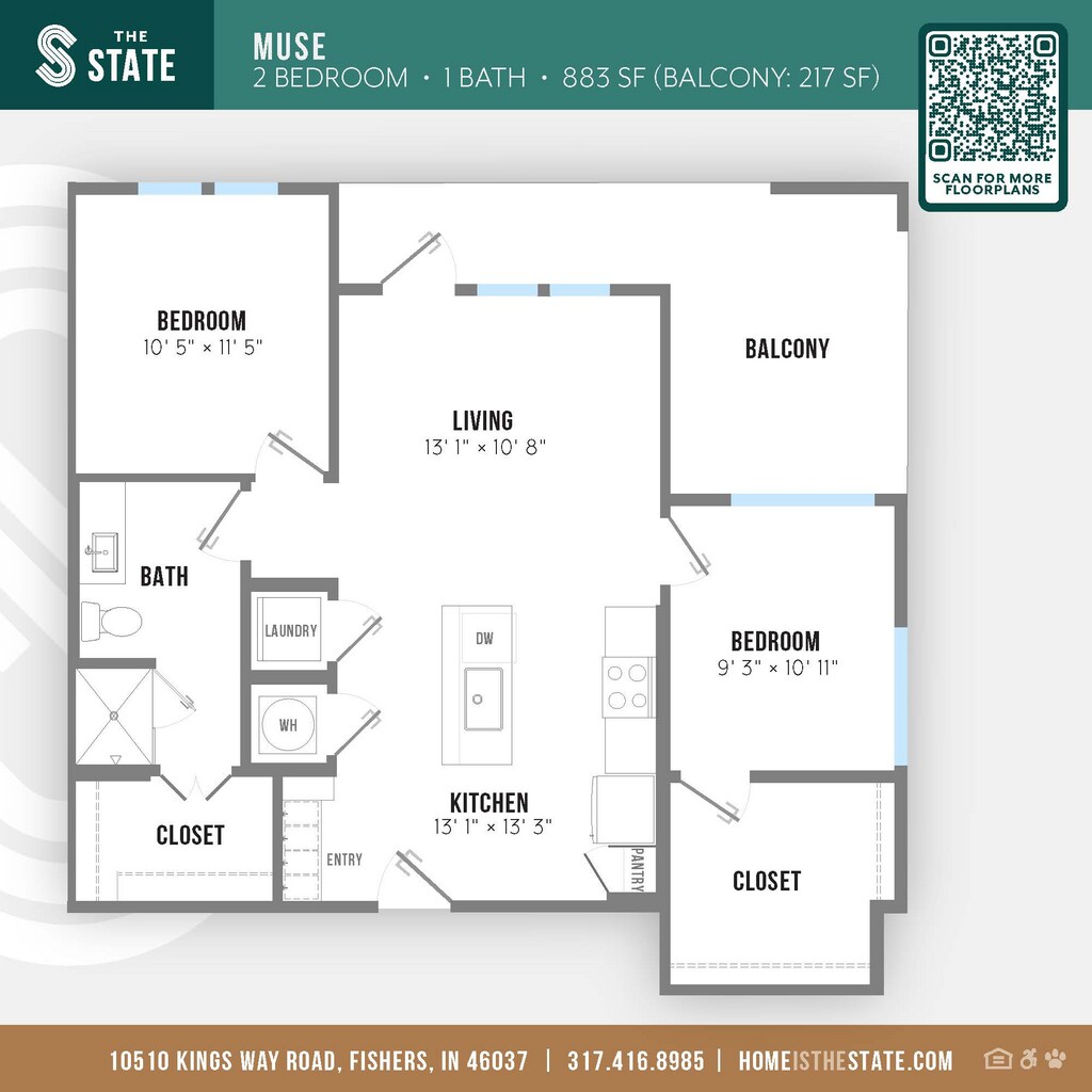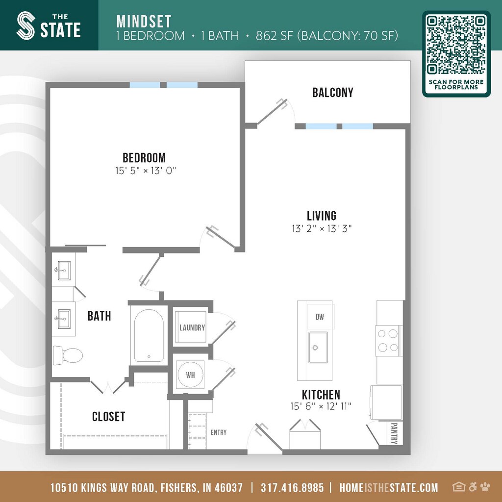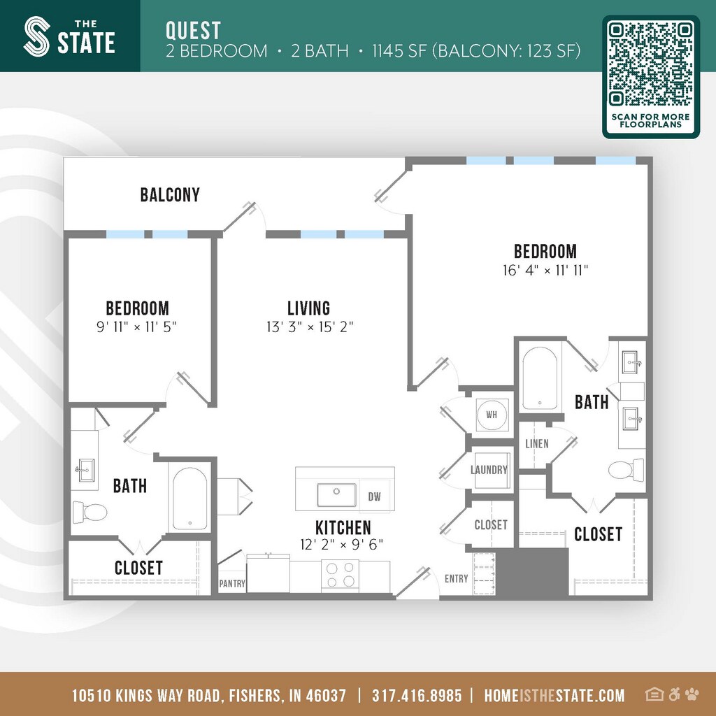 The State at Fishers Apartments offers Studio to 3 Bedroom apartments starting from $1,294 and having 100–1,488 sq ft. Here is the current pricing and availability: