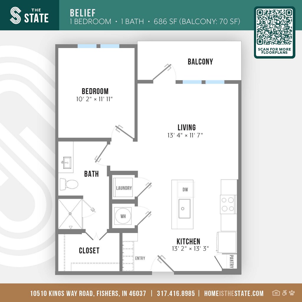 Apartment Model: Belief 1.1From $1,6621 Bedroom, 1 Bath, 686 sq ftAvailable Now![]()