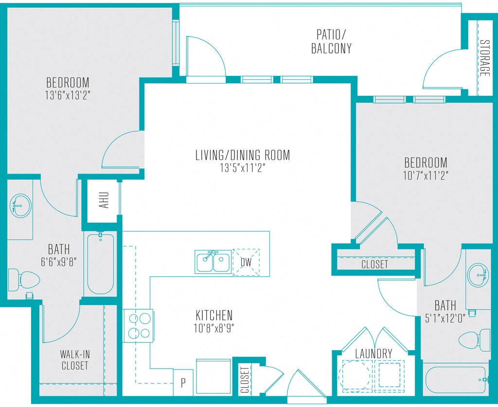 Apartment Model: B2$8992 Bedroom, 2 Bath, 999 sq ftAvailable Now![]()