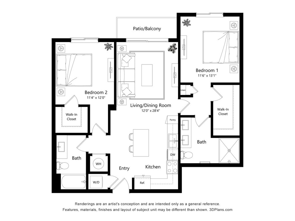 Apartment Model: 2 Bedroom 2 Bathroom2 Bedroom, 2 Bath, 1154 sq ftAvailable January 1, 2026![]()