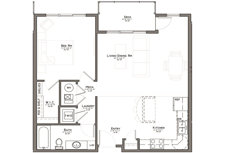 1 Bed, 1 Bath, 803-809 sq ftAvailable NowModel Gallery