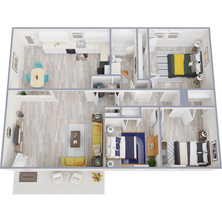 Apartment Model: 3 Bed 1 Bath3 Bedroom, 1 Bath, 1100 sq ftAvailable Now![]()