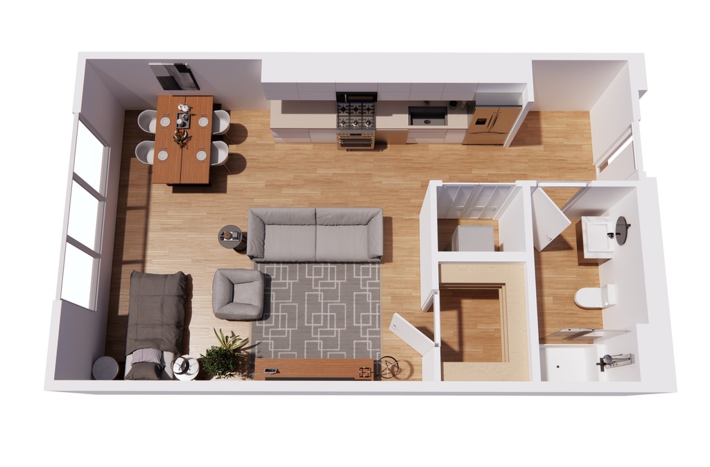 Studio, 1 Bath, 584 sq ftAvailable NowModel Gallery