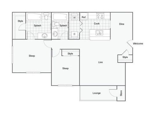 2 Beds, 2 Baths, 923 sq ftAvailable NowModel Gallery