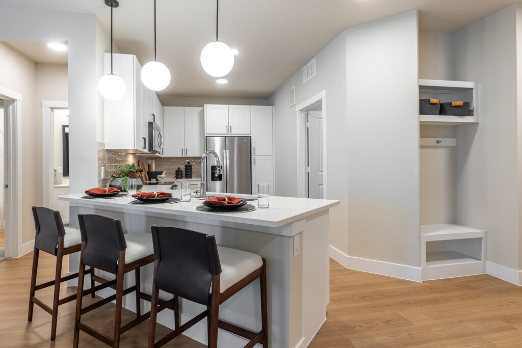 - Quartz countertops with built-in USB outlets