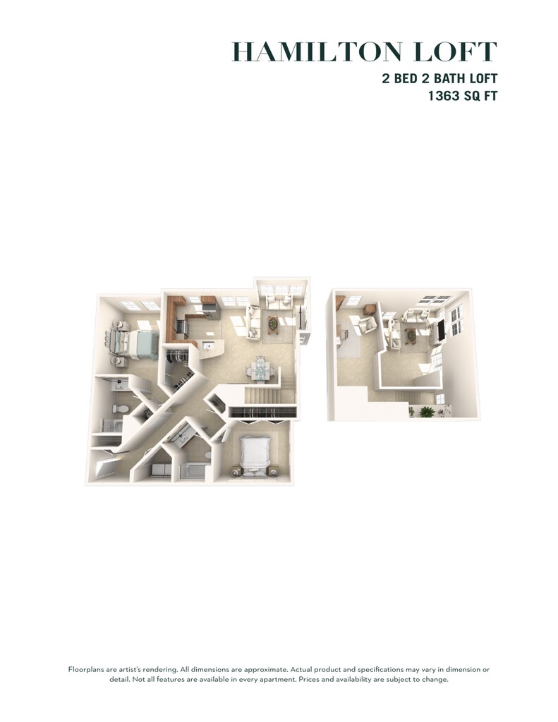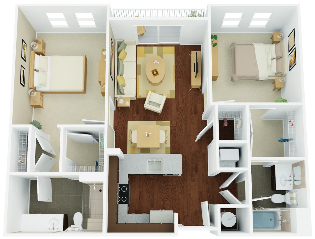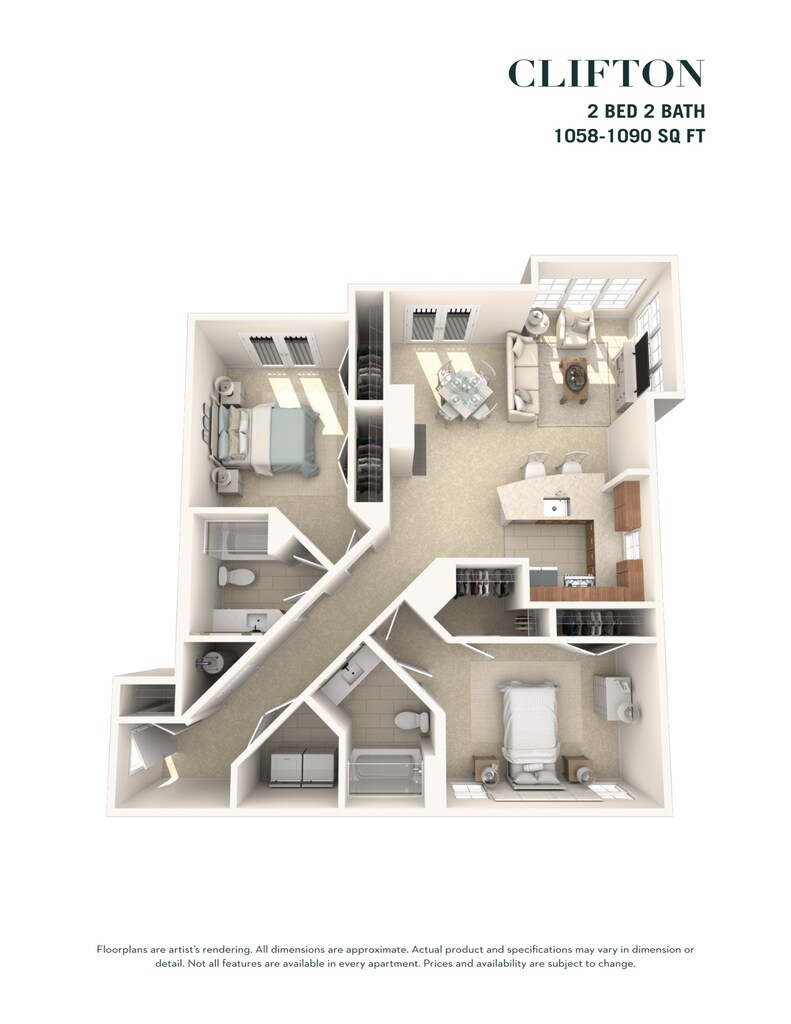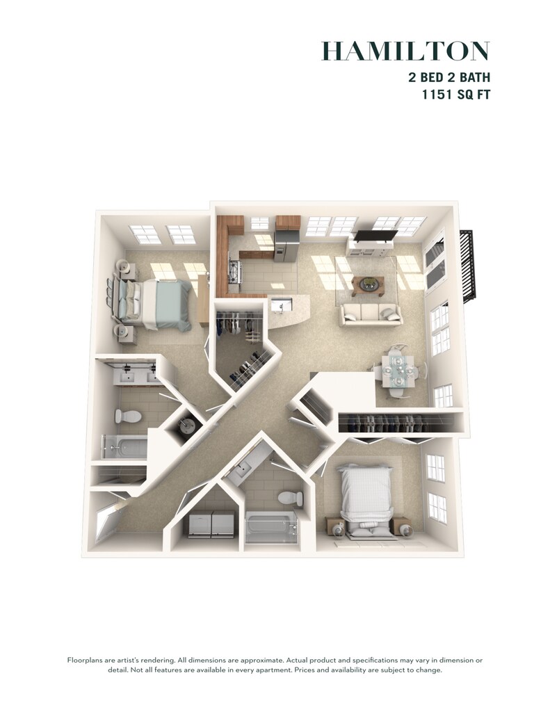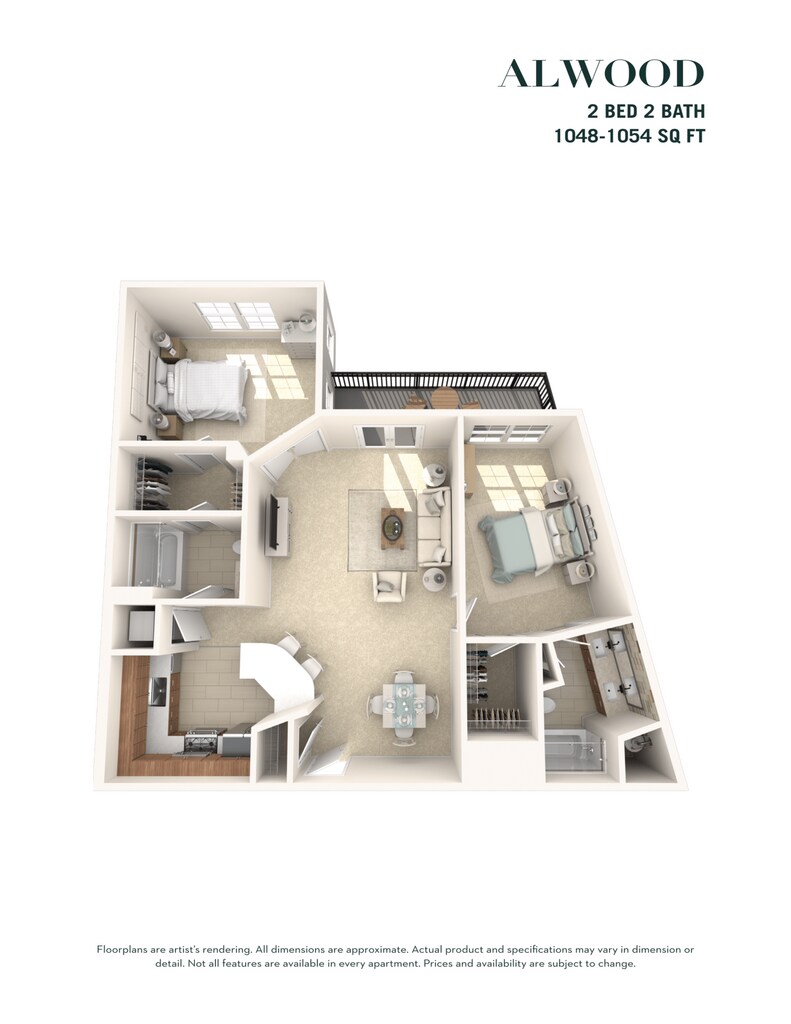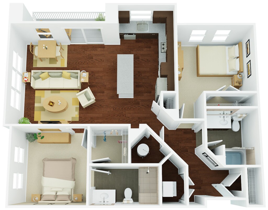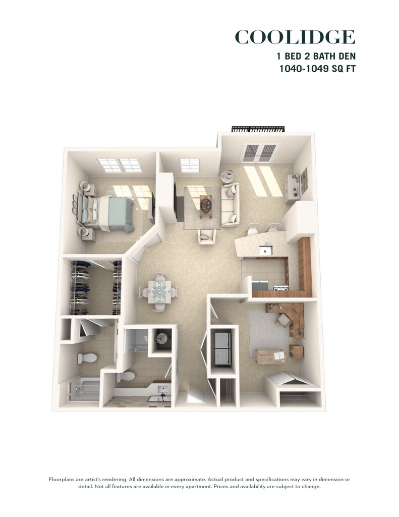 1 Bed, 2 Baths, 1038 sq ftAvailable NowModel Gallery