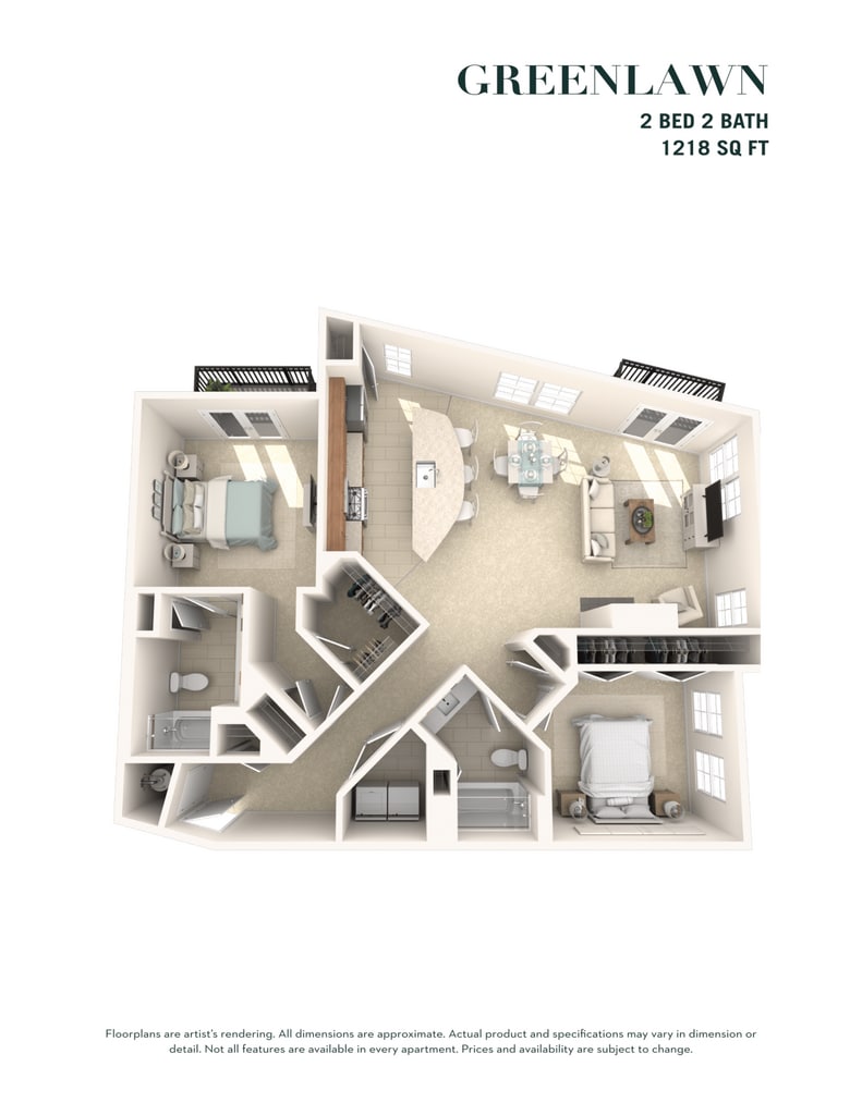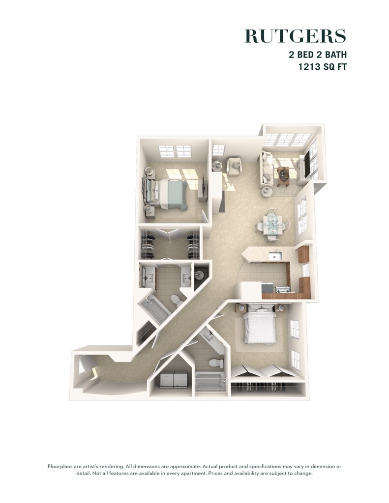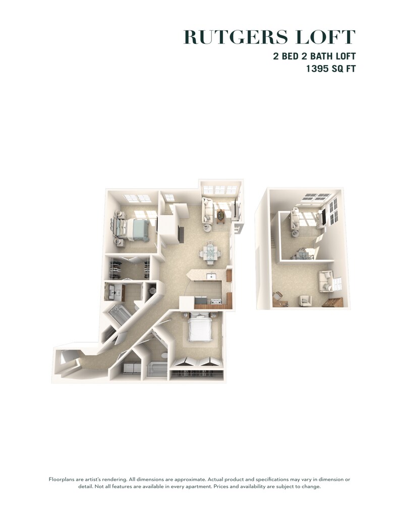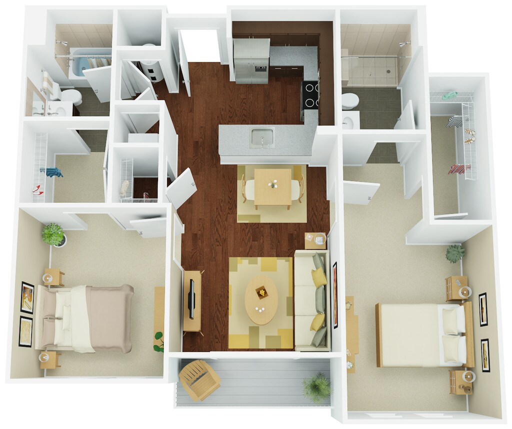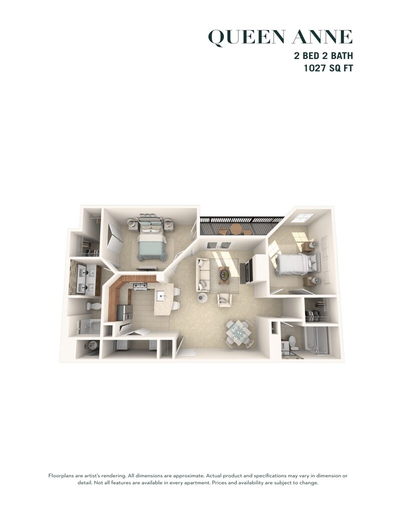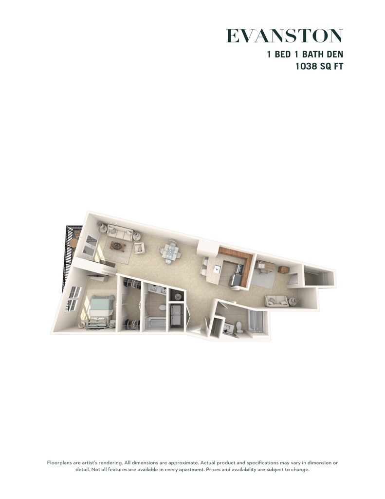 1 Bed, 2 Baths, 1038 sq ftAvailable NowModel Gallery