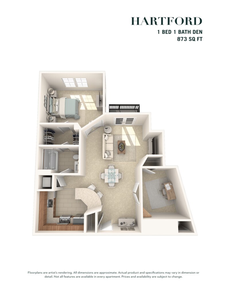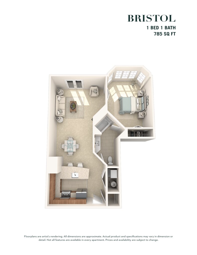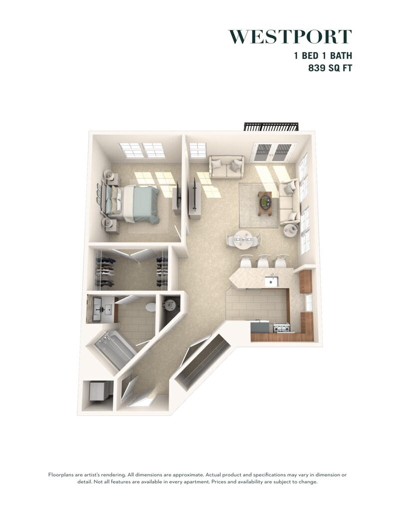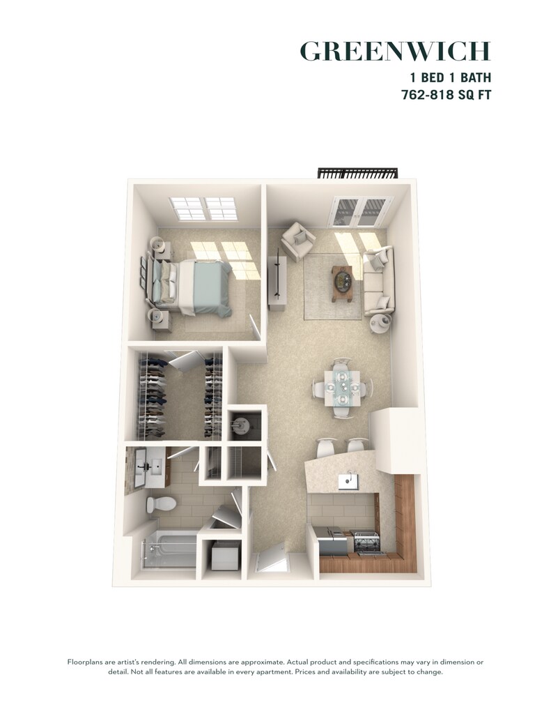 1 Bed, 1 Bath, 765 sq ftAvailable NowModel Gallery