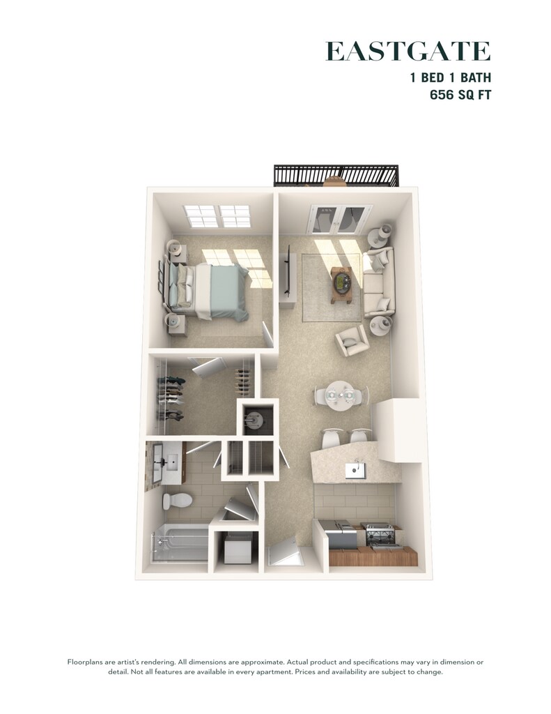Studio, 1 Bath, 572 sq ftModel Gallery