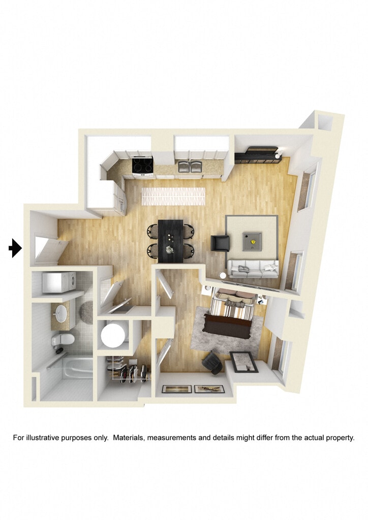 1 Bedroom Apartment - Floorplan 10 Apartment Unit: 2203Apartment Model: 1 Bedroom Apartment$1,6591 Bedroom, 1 Bath, 627 sq ftAvailable Now![]()