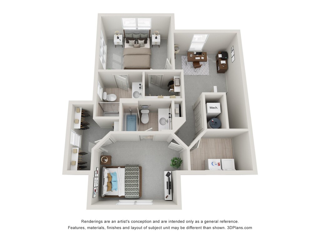 2 Beds, 2.5 Baths, 1644 sq ftLargest 2 BedroomThis is the largest 2 Bedroom at this PropertyModel Gallery