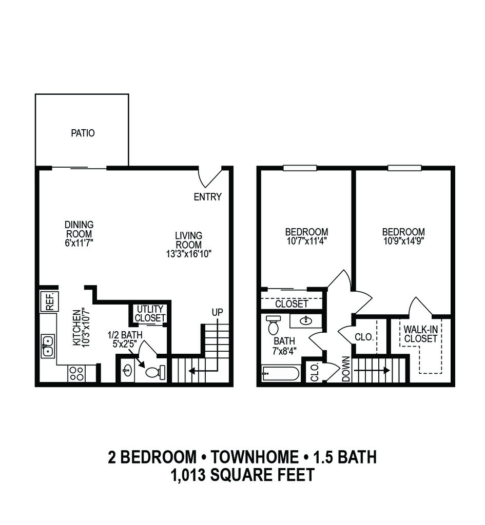 Apartment Model: 2 Bedroom 1.5 Bath TownhomeFrom $1,0502 Bedroom, 1.5 Bath, 1013 sq ftAvailable Now![]()