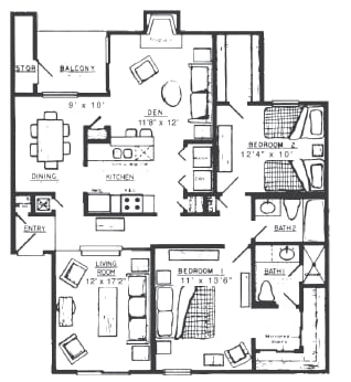 2 Beds, 2 Baths, 973 sq ftAvailable NowModel Gallery
