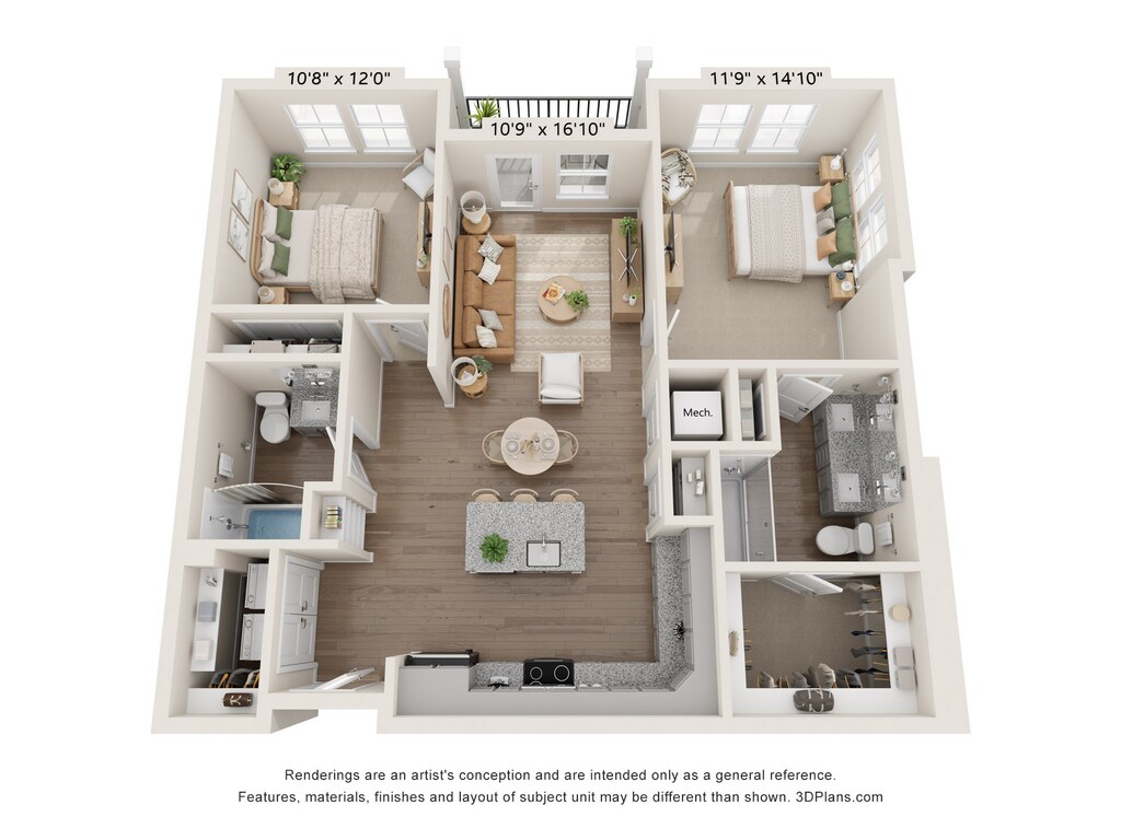 2 Beds, 2 Baths, 1066 sq ftLargest 2 BedroomThis is the largest 2 Bedroom at this PropertyModel Gallery