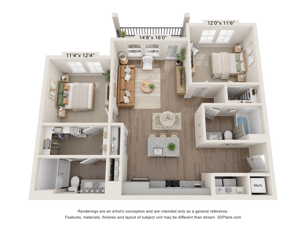 Apartment Model: HighlandCall For Rates2 Bedroom, 2 Bath, 1066 sq ftUnavailableHighland - Floorplan 1 3 Bedrooms