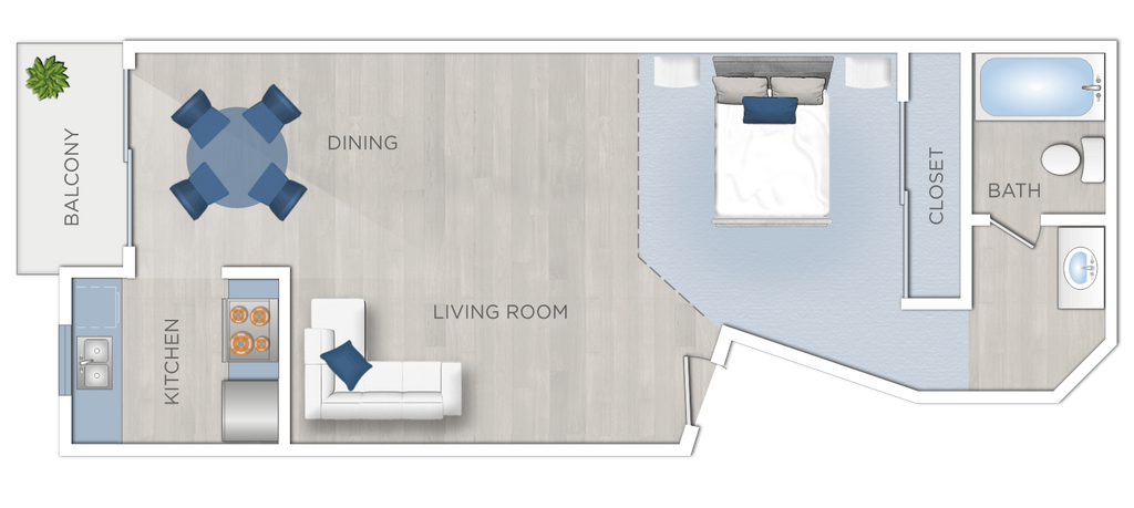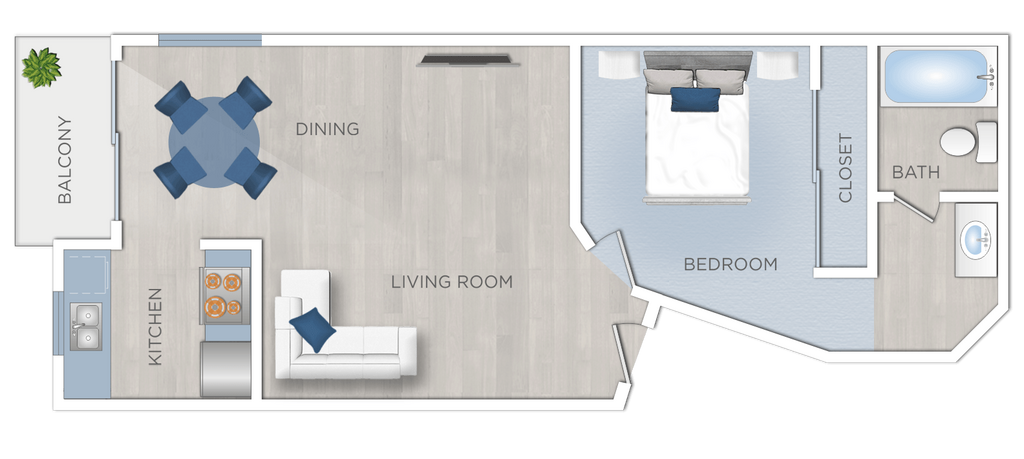 1 Bed, 1 Bath, 590 sq ftModel Gallery