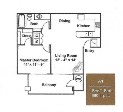 Apartment Model: A1R$1,7751 Bedroom, 1 Bath, 690 sq ftAvailable NowFloorplansPhotos![]()