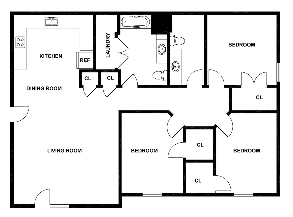 3 bedroom 2 bath - Floorplan 1