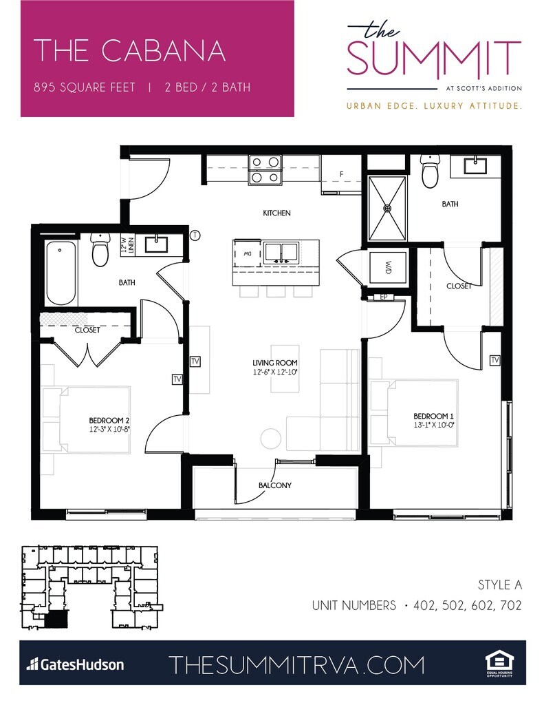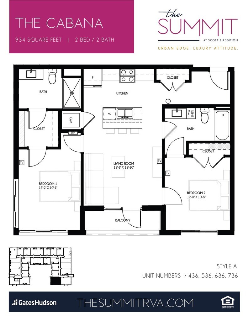 The Cabana - Style A - Floorplan 2 Apartment Unit: 636Apartment Model: The Cabana - Style A$2,3502 Bedroom, 2 Bath, 934 sq ftAvailable Now