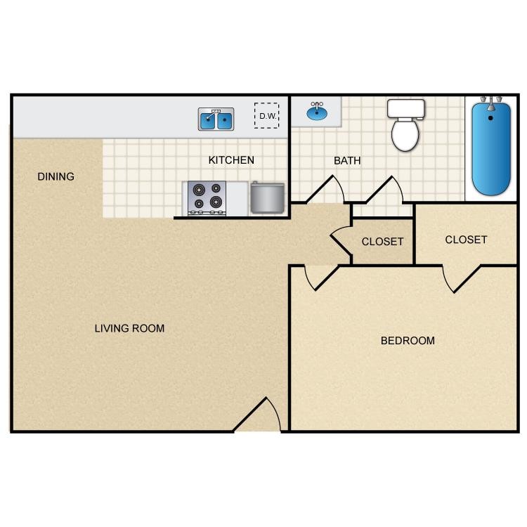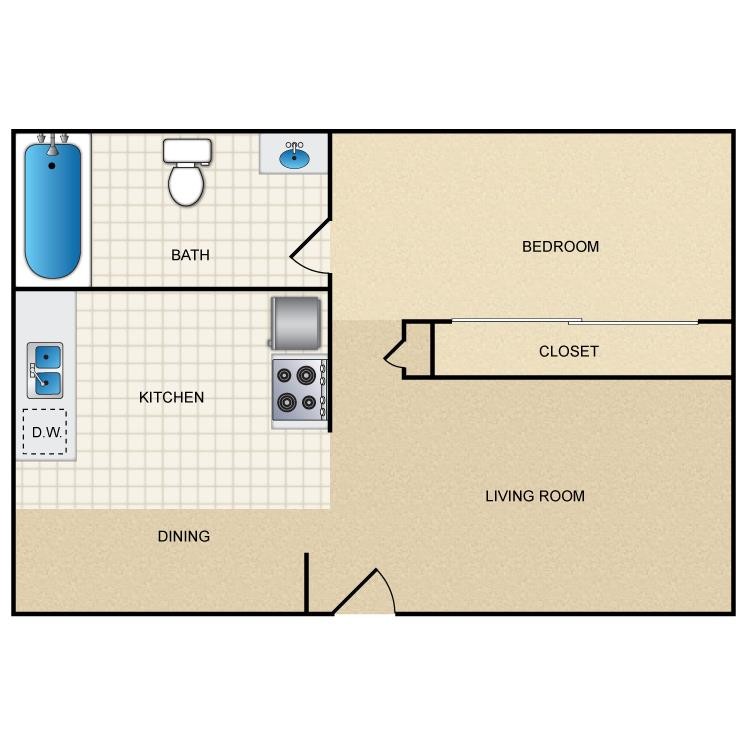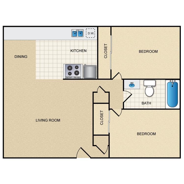 One Bedroom One Bath - Floorplan 5 2 Bedrooms